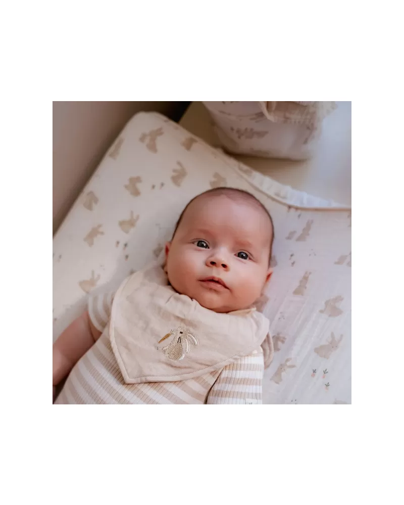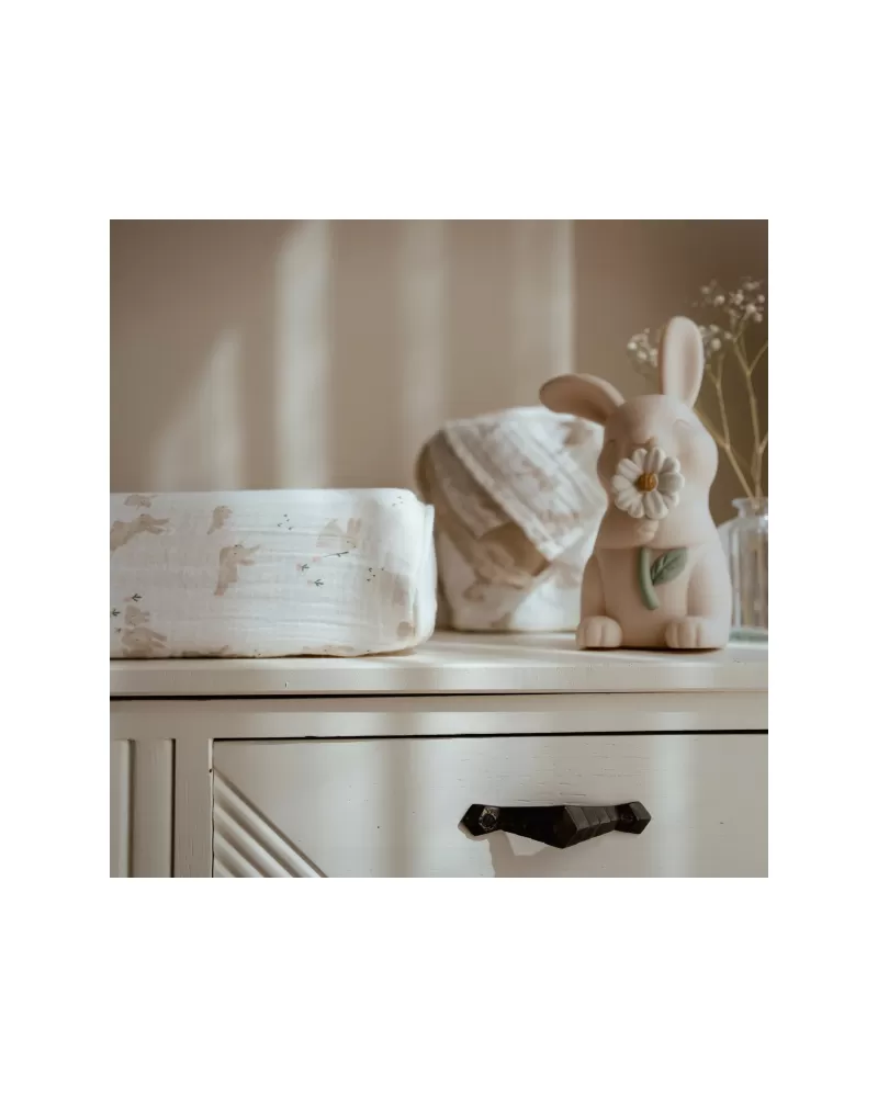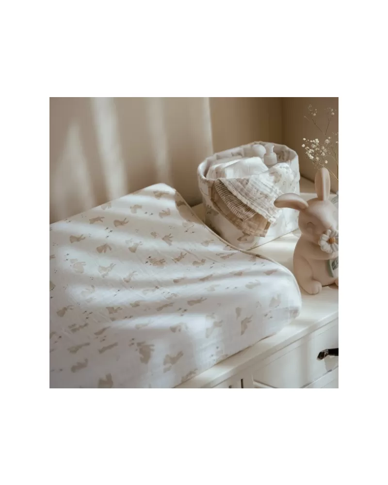 Potah na přebalovací podložku z jemné organické bavlny zpříjemní každé přebalování vašeho miminka. Díky svému roztomilému designu s potiskem králíčků promění přebalovací koutek v krásné, útulné místo. Měkký materiál potahu je pro dítě příjemný a zajistí, že ho přebalovací podložka nebude studit při doteku s pokožkou.