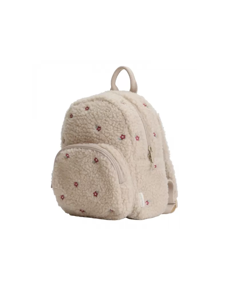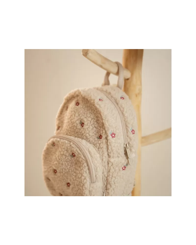 Roztomilý dětský batůžek z měkkého plyšového materiálu s květinovou výšivkou je ideálním doplňkem na výlety do přírody i procházky městem. Batůžek má nastavitelné ramenní popruhy a hrudní pás pro příjemné nošení. Držadlo umožňuje přenášení v ruce. Batůžek je vybaven vnější kapsou na zip pro uložení drobností a vnitřní prostor s kapsou, elastickým držákem na pití a jmenovkou.