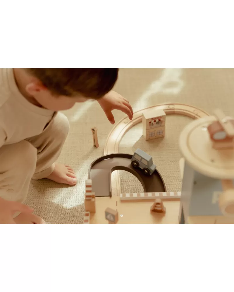 Garáž je ideálním rozšířením vláčkodráhy Little Dutch, ale skvěle poslouží i jako samostatná hračka pro všechny malé milovníky aut.