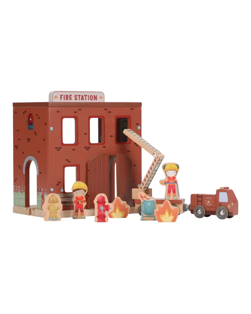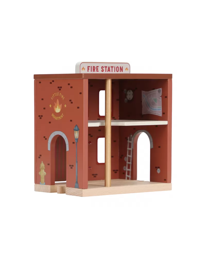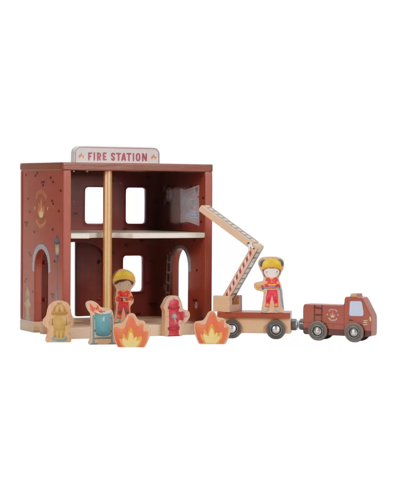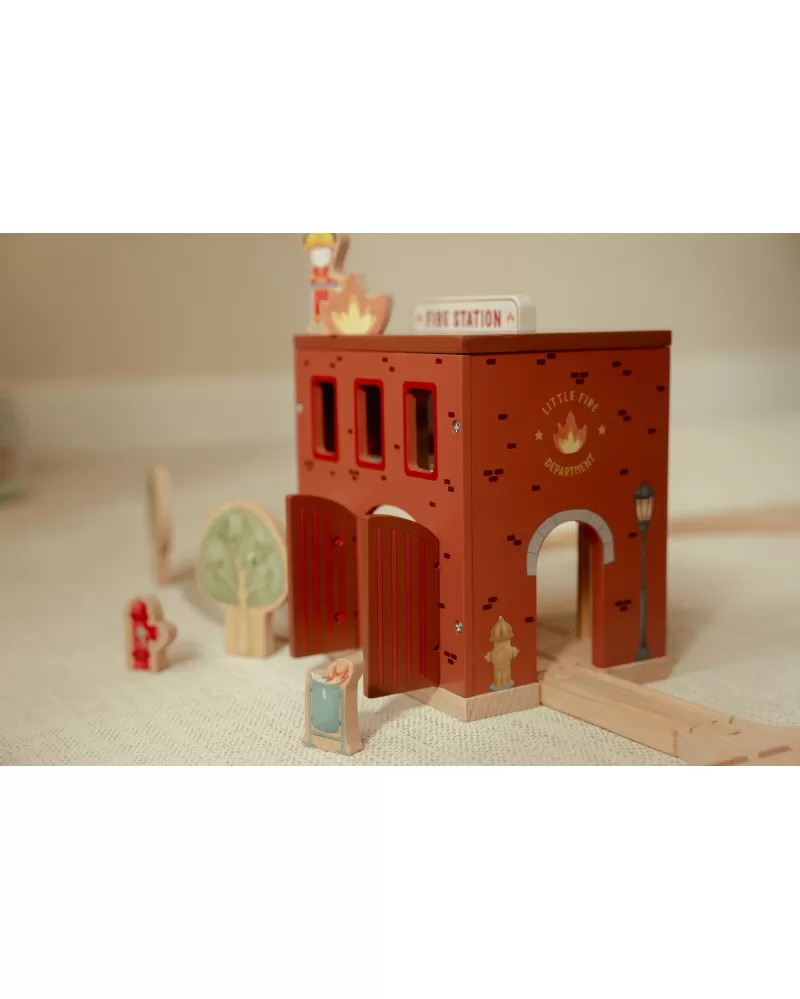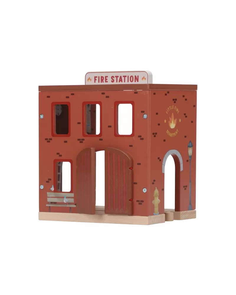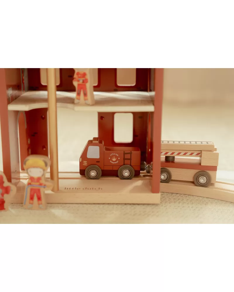 Součástí sady jsou figurky hasičů, oheň a hořící popelnice pro realistické hraní. Dveře stanice lze otevřít, aby mohl zásah začít co nejrychleji. Hasičská stanice je kompatibilní s dřevěnou vláčkodráhou Little Dutch, což umožňuje ještě více zábavy a kombinací.