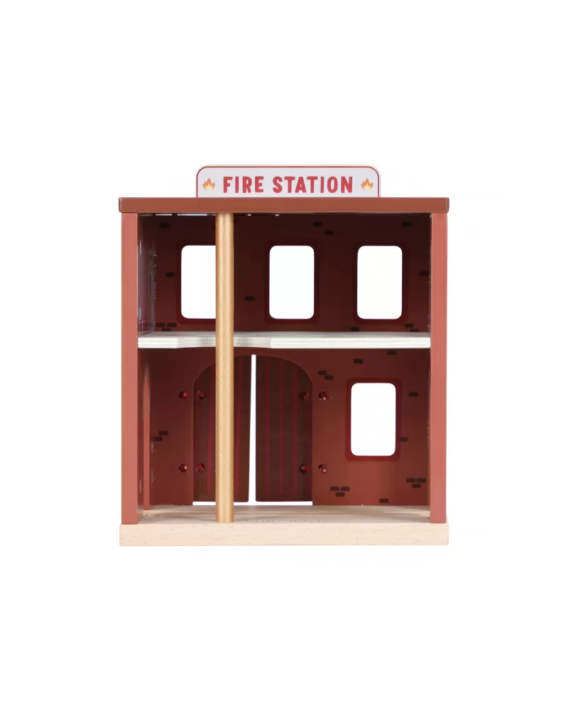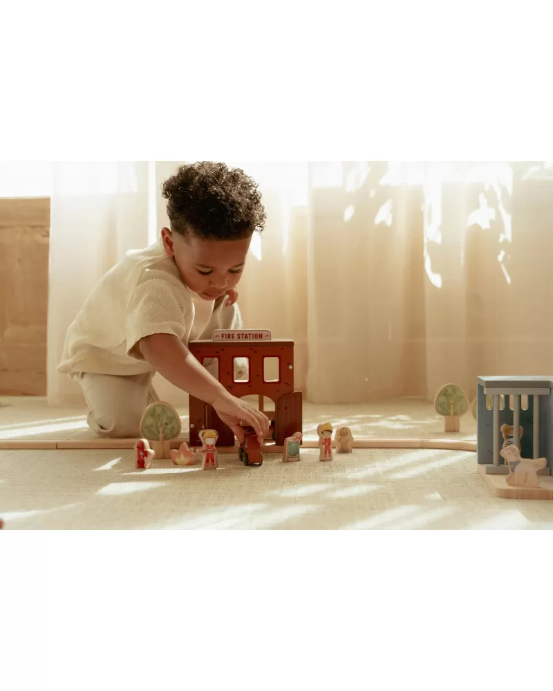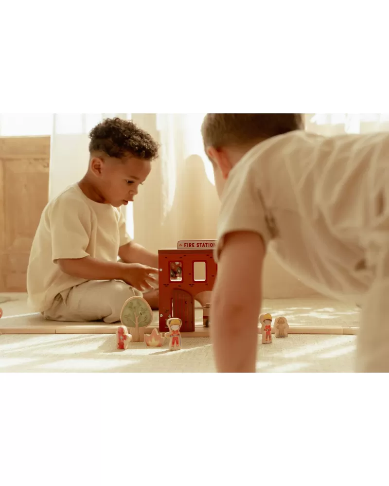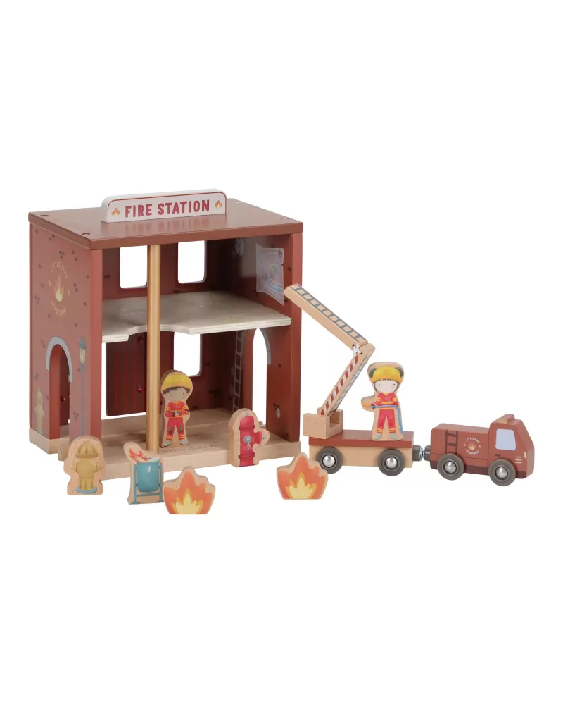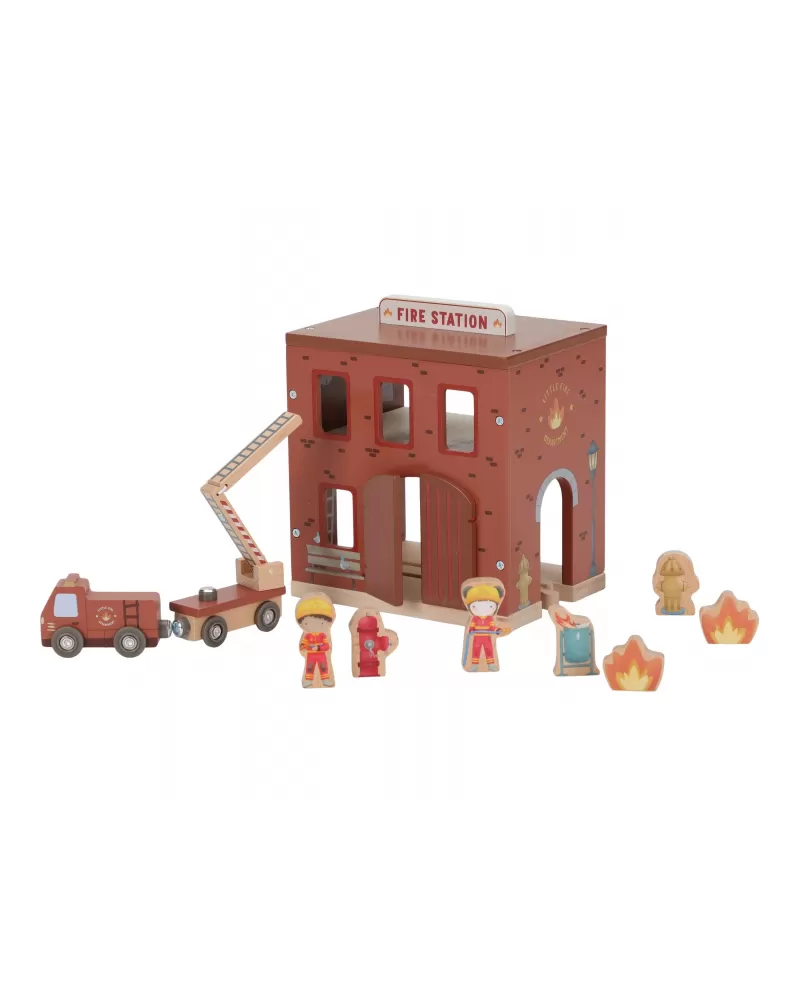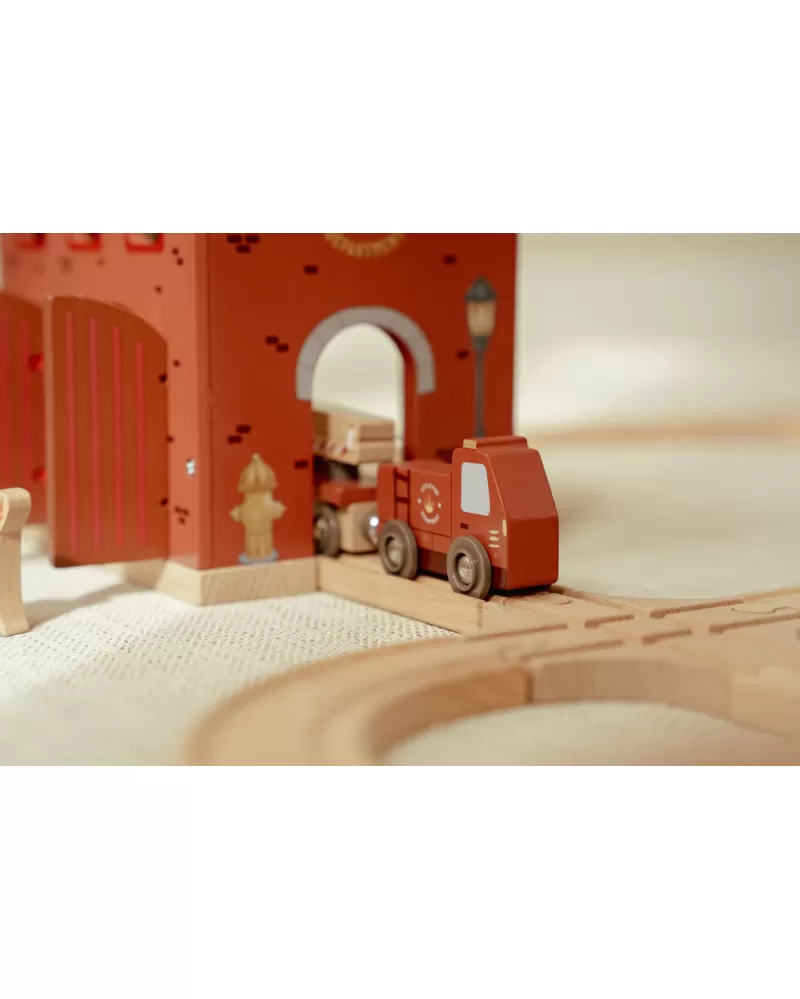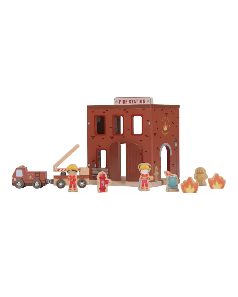 Součástí sady jsou figurky hasičů, oheň a hořící popelnice pro realistické hraní. Dveře stanice lze otevřít, aby mohl zásah začít co nejrychleji. Hasičská stanice je kompatibilní s dřevěnou vláčkodráhou Little Dutch, což umožňuje ještě více zábavy a kombinací.