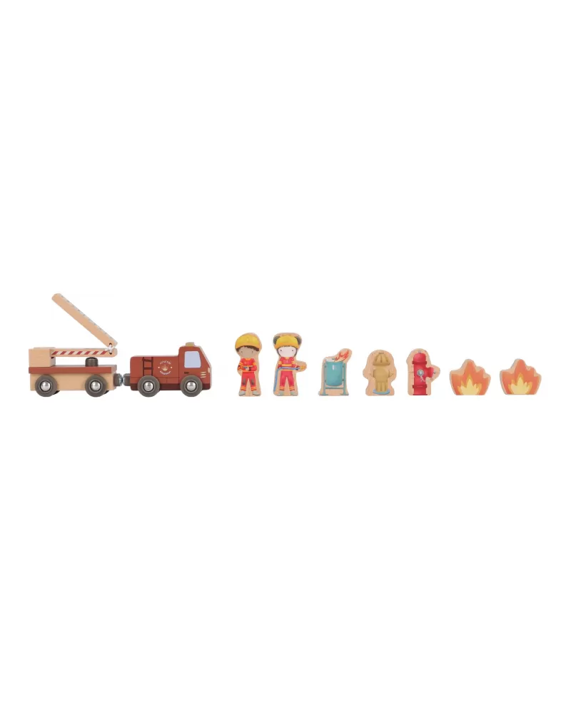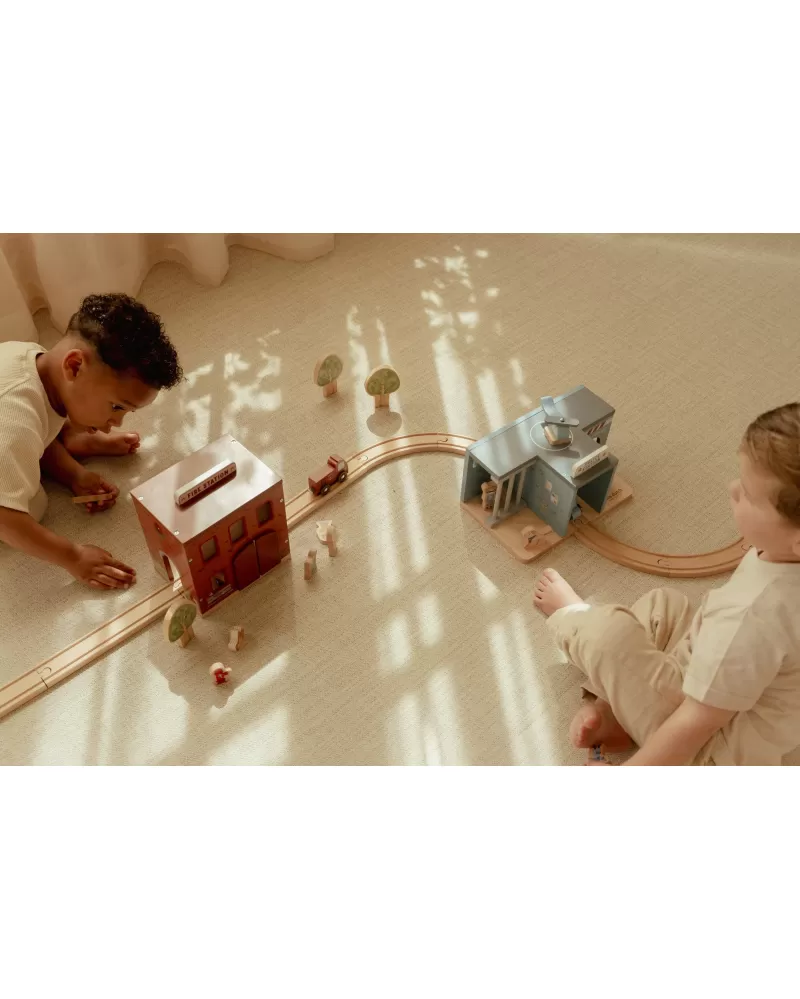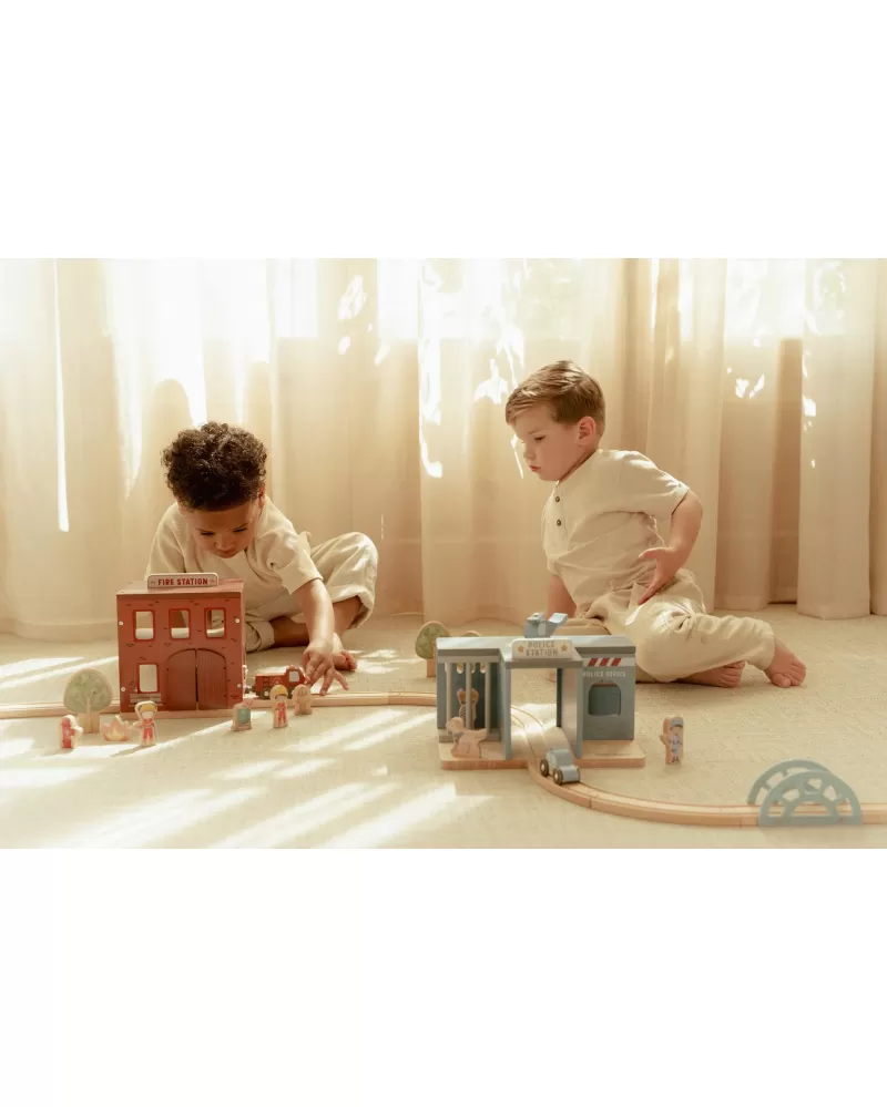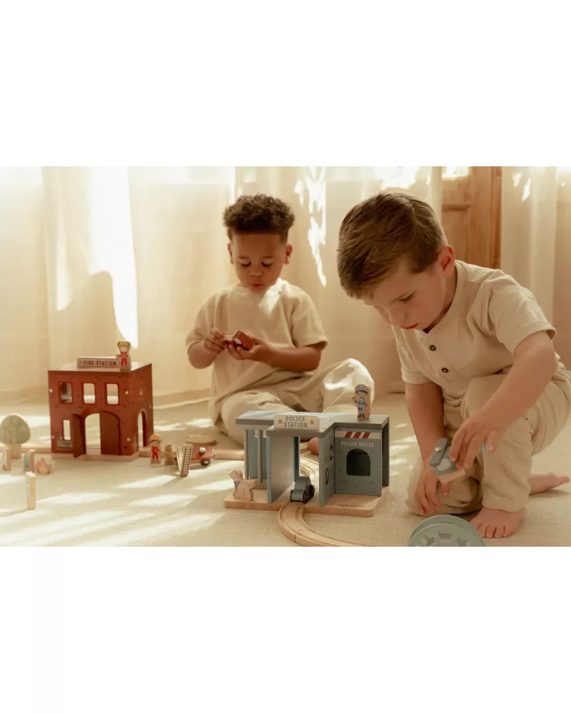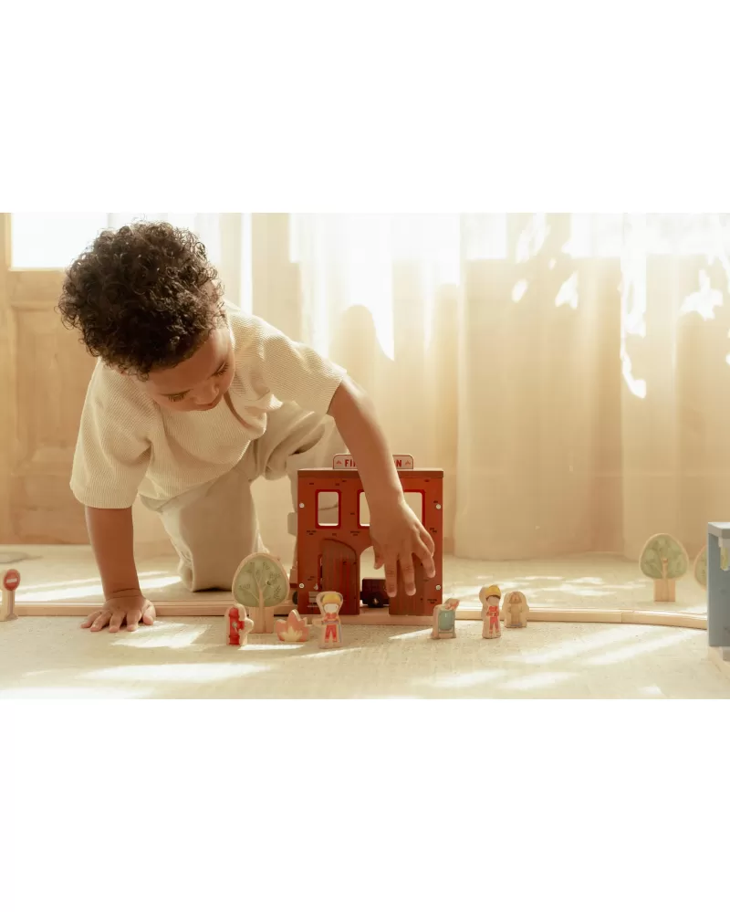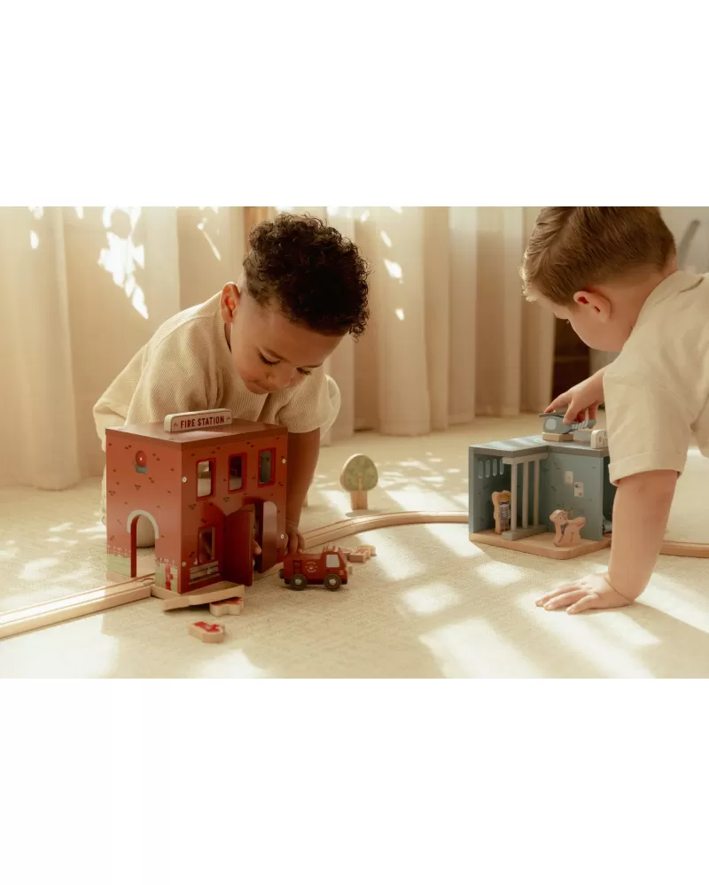 Součástí sady jsou figurky hasičů, oheň a hořící popelnice pro realistické hraní. Dveře stanice lze otevřít, aby mohl zásah začít co nejrychleji. Hasičská stanice je kompatibilní s dřevěnou vláčkodráhou Little Dutch, což umožňuje ještě více zábavy a kombinací.