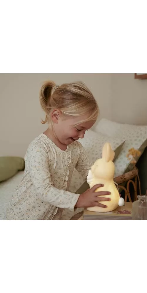 Noční lampička v podobě roztomilého králíčka je ideální pro klidné usínání vašeho dítěte. Lampička s jemným LED světlem funguje s bateriemi a je tak snadno přenosná. Její ovládání je velmi jednoduché, stačí ji jen zapnout. Pro úsporu baterií se světlo po 12 minutách automaticky vypne.