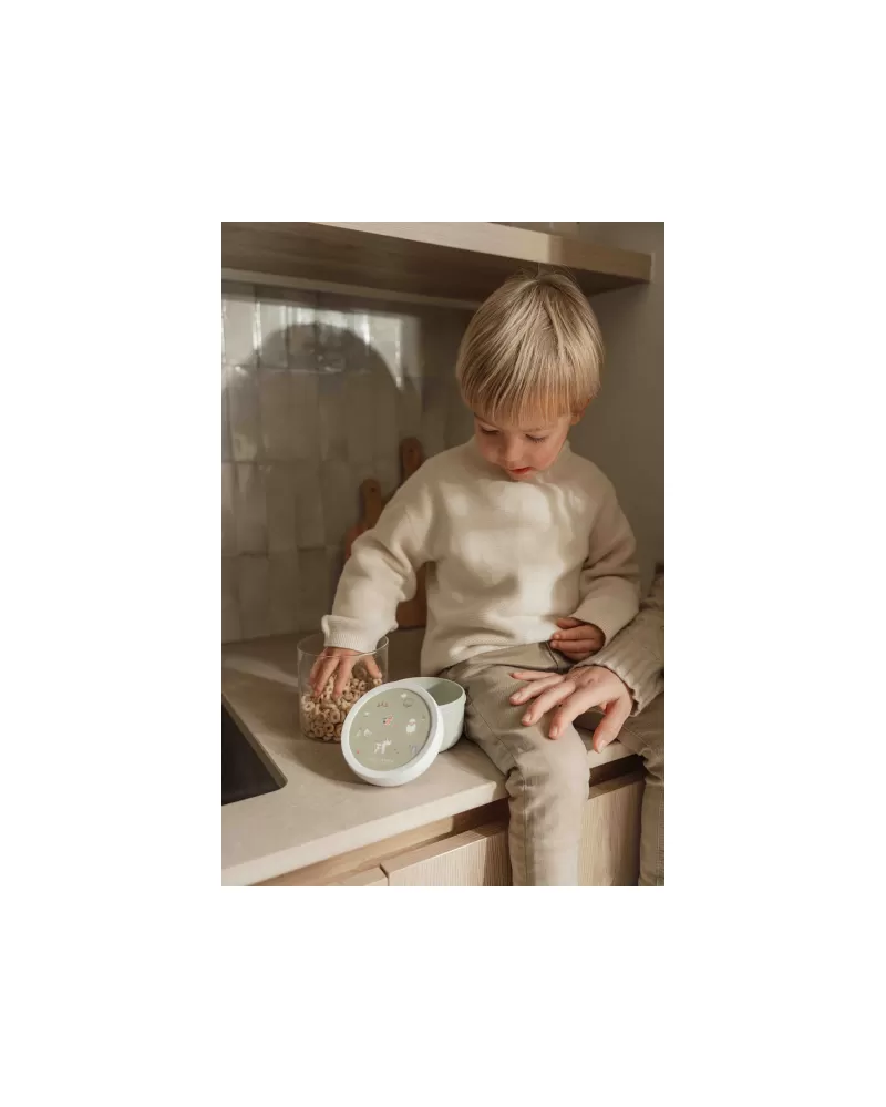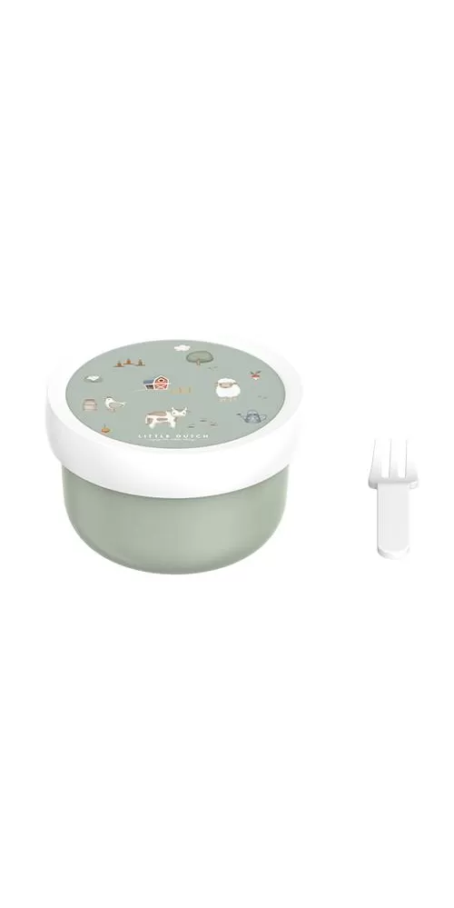 Praktický box na ovoce, nakrájenou zeleninou apod. má spolehlivé těsnicí víčko, které chrání obsah před vysypáním. Součástí boxu je i praktická malá vidlička, aby si vaše dítě mohlo vychutnat svoji svačinku bez zašpinění rukou.