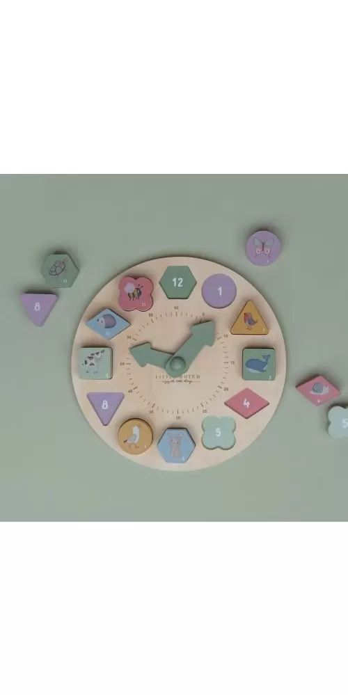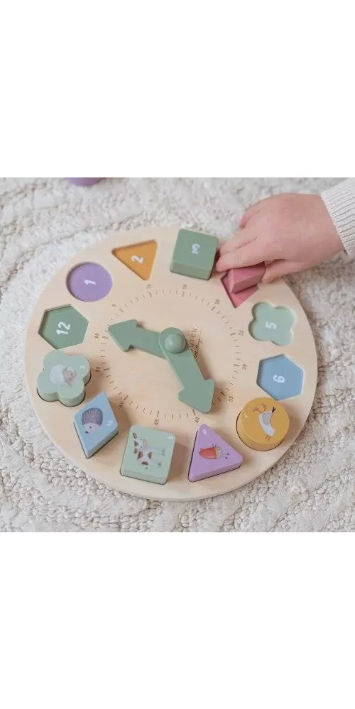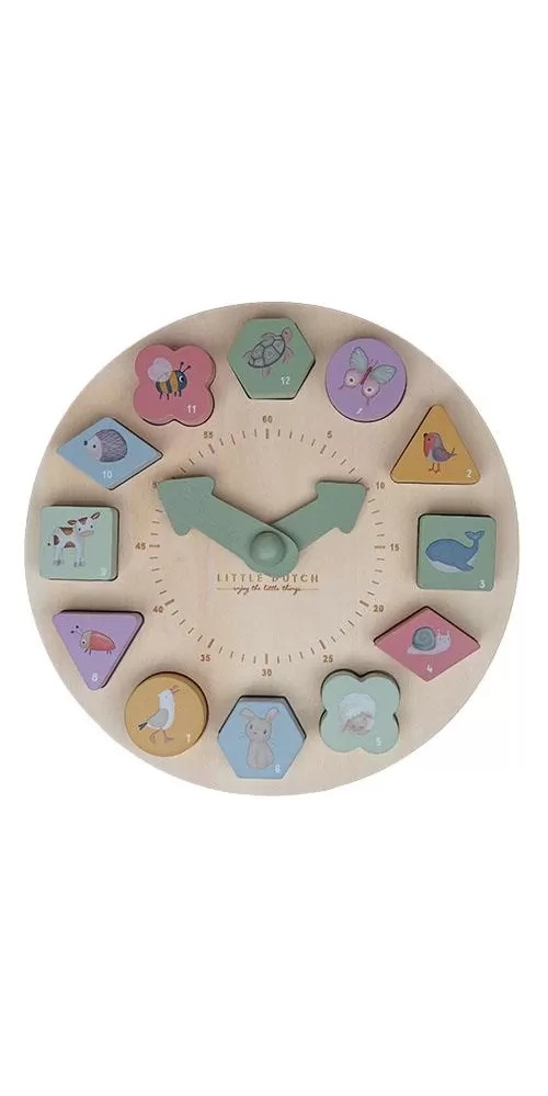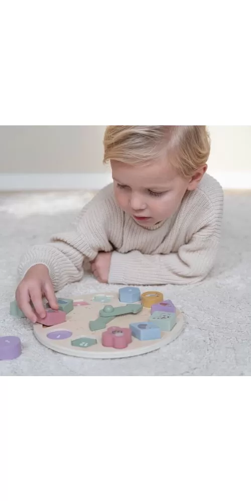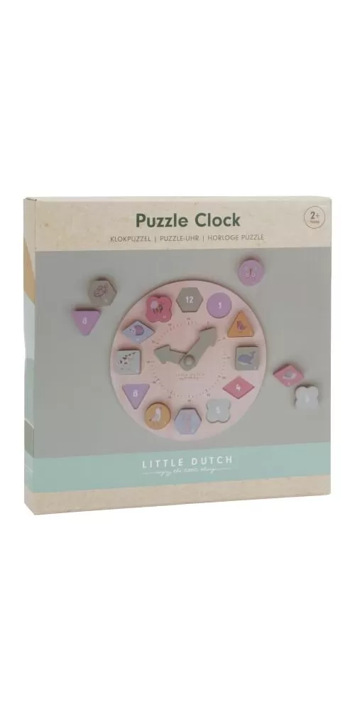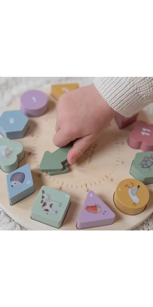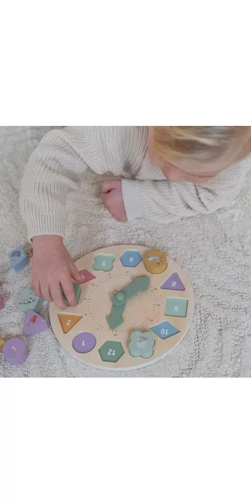 S pomocí puzzle hodin Little Dutch se děti učí rozpoznávat barvy, čísla, tvary i zvířátka.