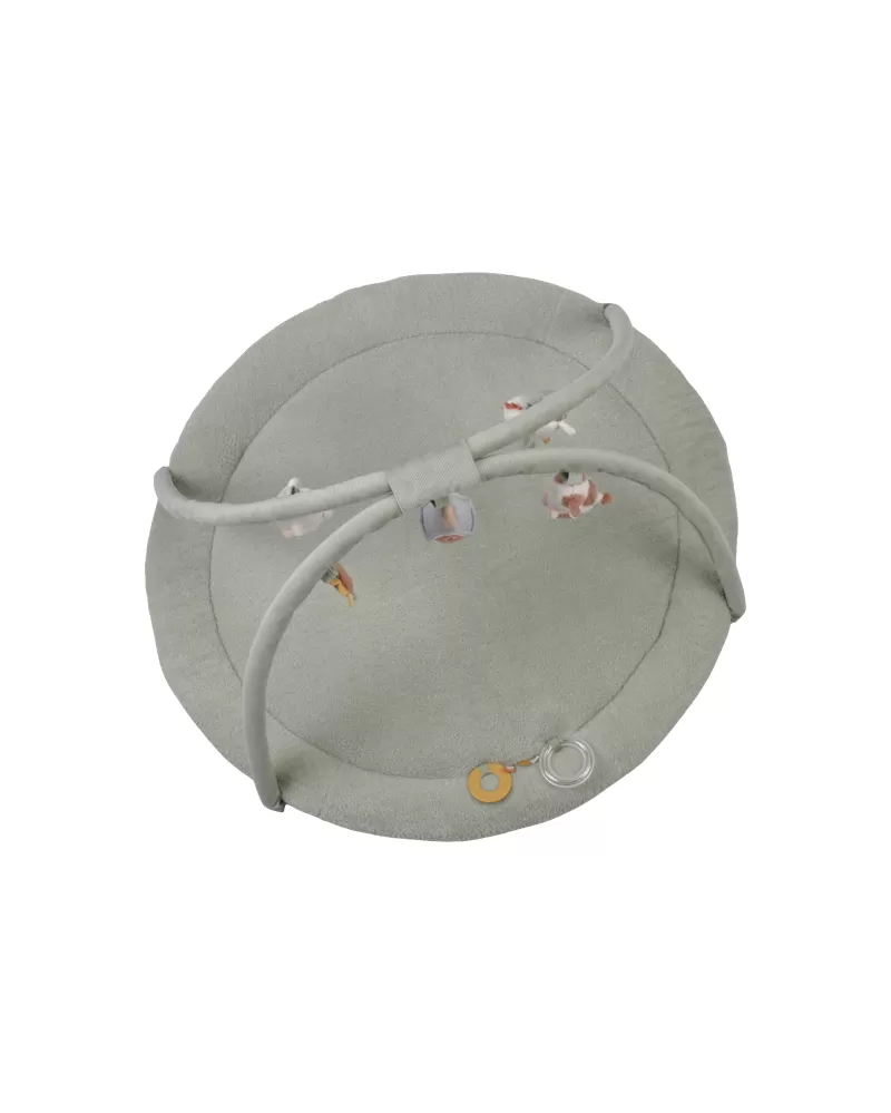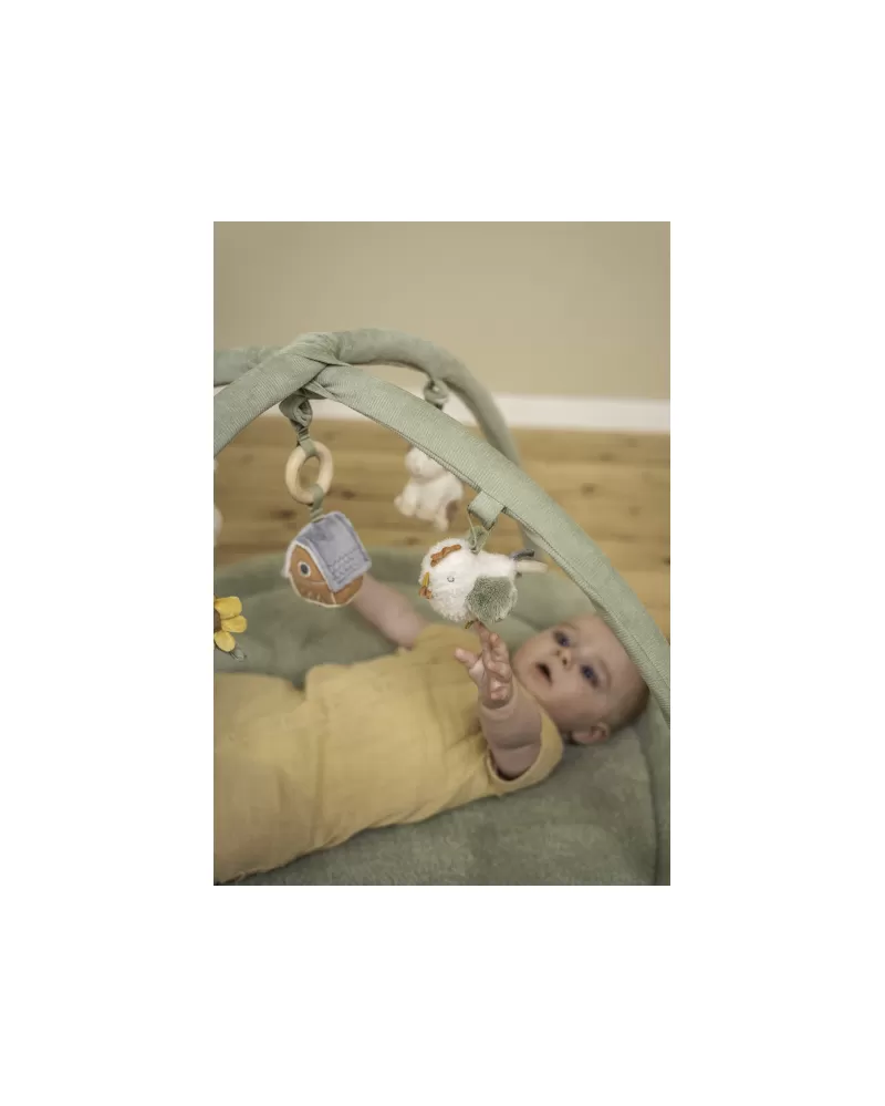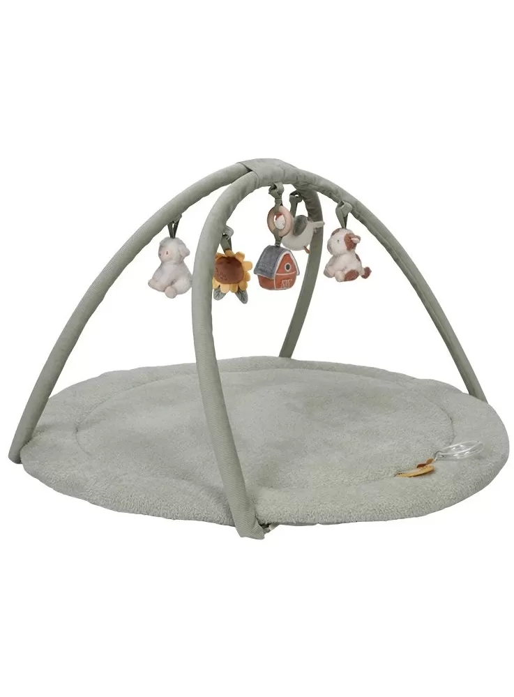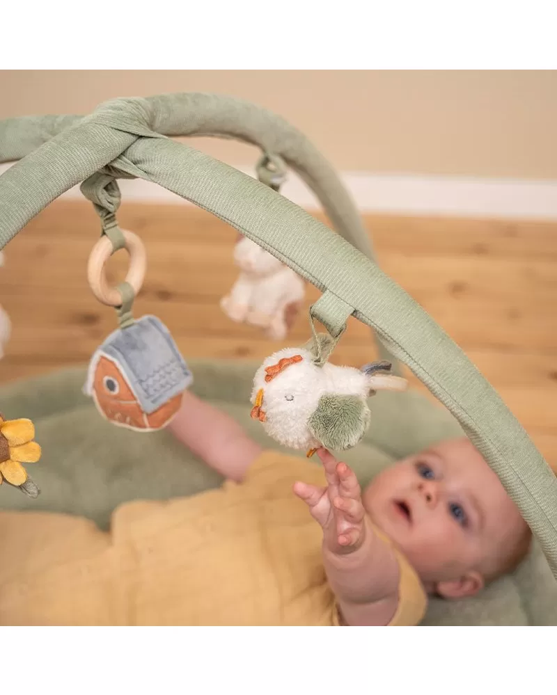 Měkká hrací deka s hrazdou, na které jsou zavěšené hračky v podobě zvířátek a motivů ze života na farmě. Při zkoumání hraček upoutá pozornost dítěte chrastění, šustění, pískání i zvonění. Hračky jsou odnímatelné a je možné je používat i samostatně.