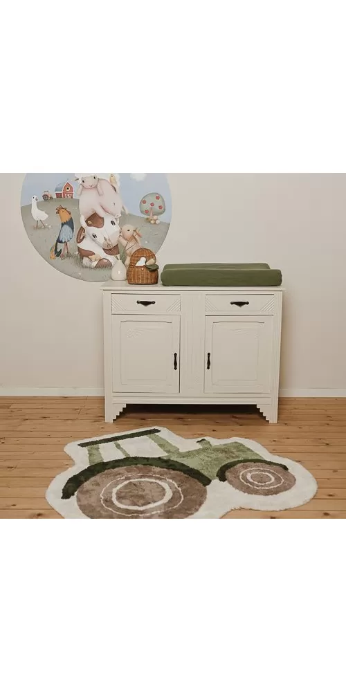 Vytvořte v dětském pokoji útulnou atmosféru s koberečkem od značky Little Dutch! Kobereček ve tvaru traktoru má jemný béžový podklad a motiv zeleno-hnědého traktoru. Jeho hravý design vnese do místnosti příjemnou a útulnou náladu a vašemu dítěti se na něm bude krásně sedět a hrát si.