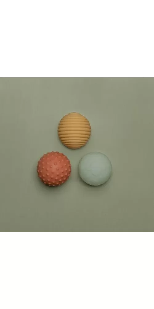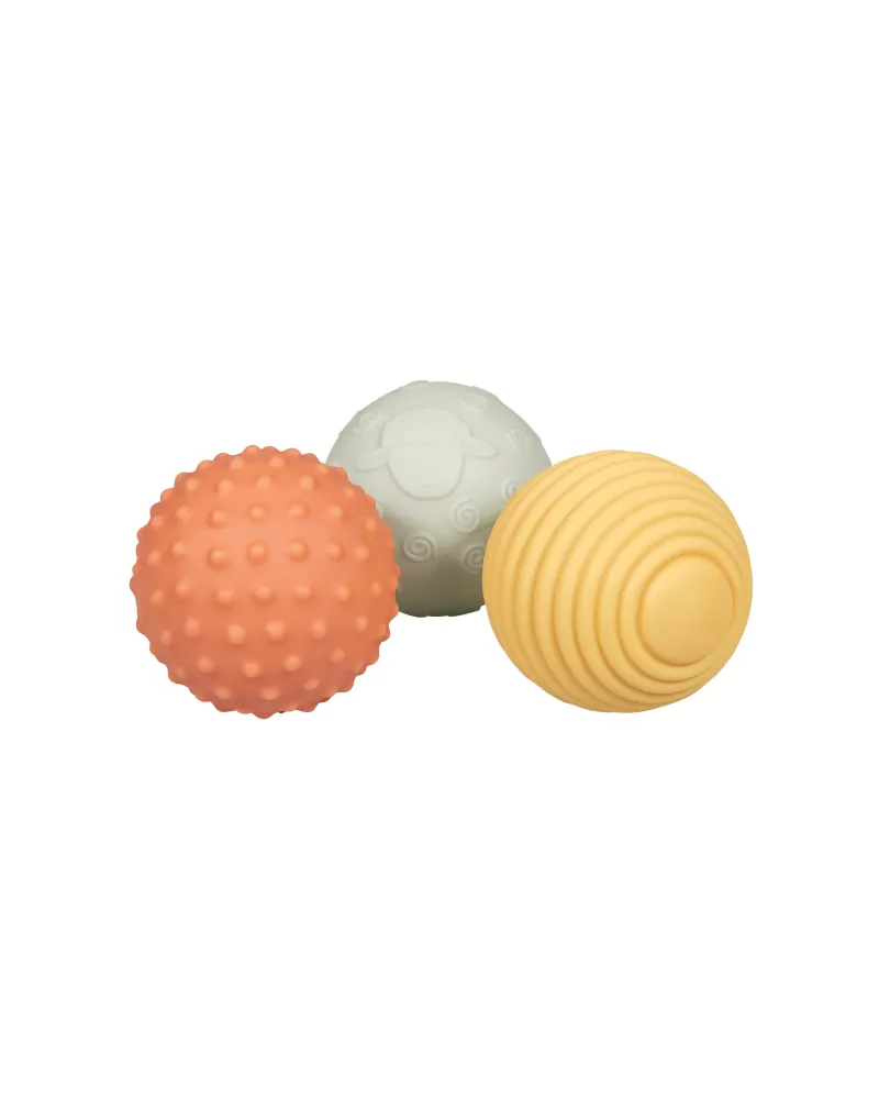 Měkké míčky s různými povrchy pro relaxaci i hru s vaším dítětem. Zkoumání míčku rukama i ústy stimuluje rozvoj smyslů dítěte. Házení, kutálení a chytání míčku pomáhá rozvoji motorických dovedností a koordinace dítěte.