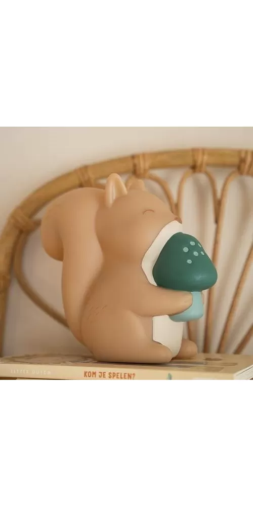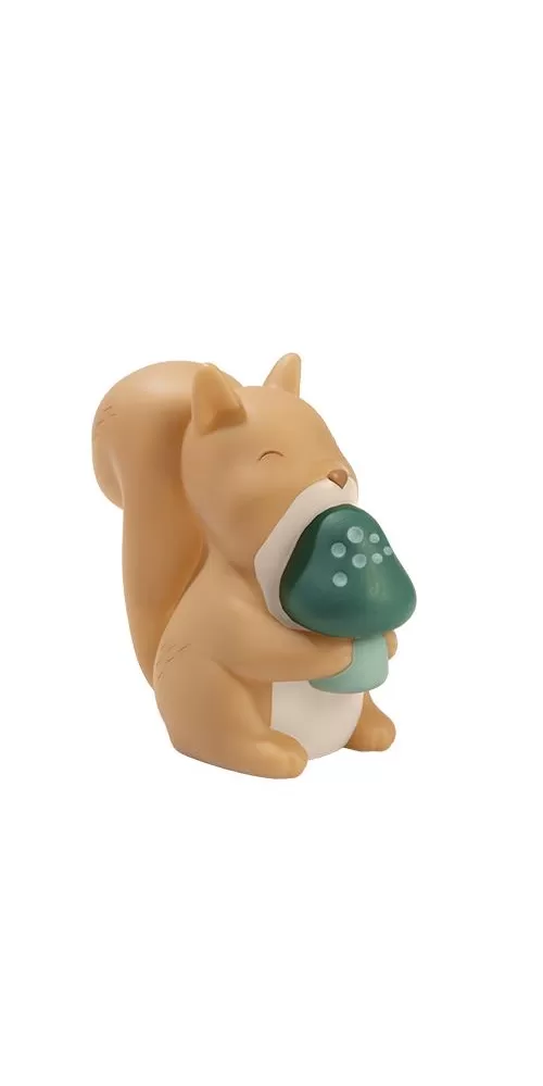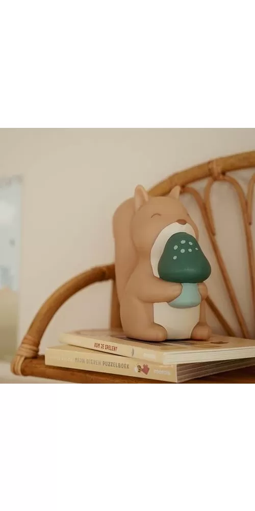 Noční lampička v podobě roztomilé veverky je ideální pro klidné usínání vašeho dítěte. Lampička s jemným LED světlem funguje s bateriemi a je tak snadno přenosná. Její ovládání je velmi jednoduché, stačí ji jen zapnout. Pro úsporu baterií se světlo po 12 minutách automaticky vypne.
