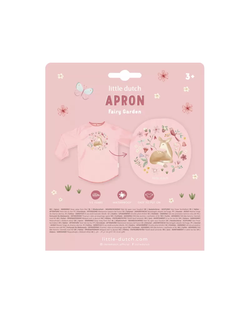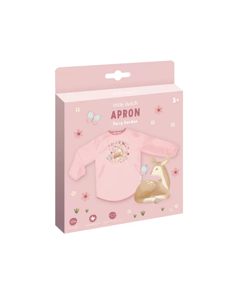 Zástěra s krásným potiskem je součástí designové kolekce hraček a doplňků Little Dutch Fairy Garden, inspirované životem na zahradě.