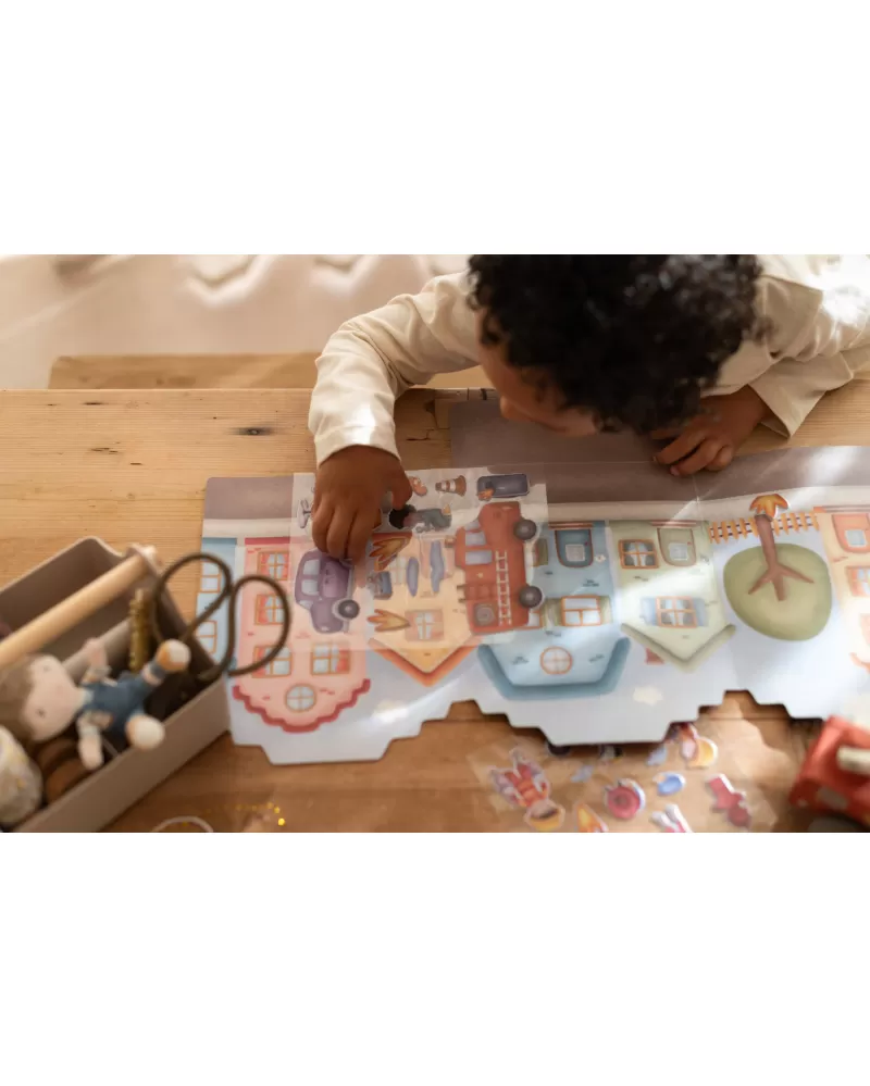 Podpořte dětskou fantazii s touto sadou opakovaně použitelných samolepek Little Dutch. Děti mohou znovu a znovu vyzdobit hasičskou stanici a ulice města více než čtyřiceti veselými 3D samolepkami a pokaždé vytvořit jiný příběh.