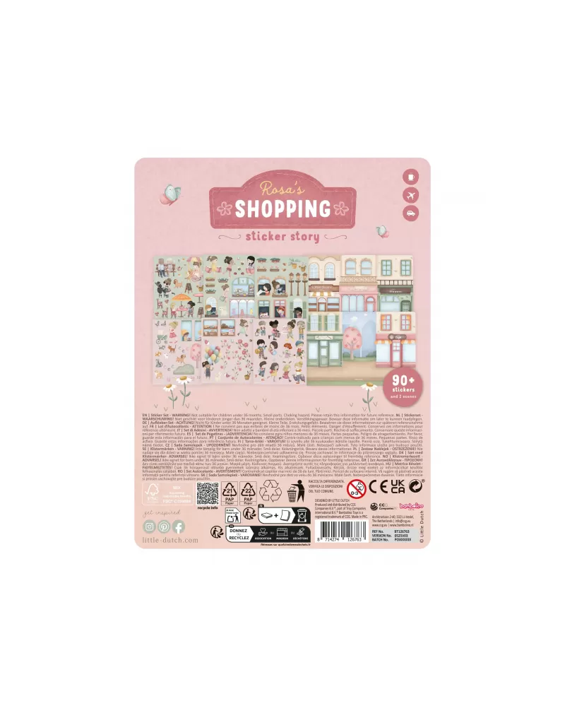 Fantazie vašeho dítěte ožije s touto veselou samolepkovou knížkou Little Dutch. Obsahuje více než 90 barevných samolepek s tématem nakupování a oboustranné herní pozadí, na kterém si děti mohou vytvářet vlastní příběhy, scény a dobrodružství.