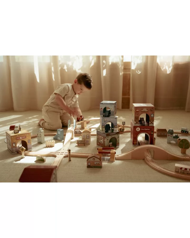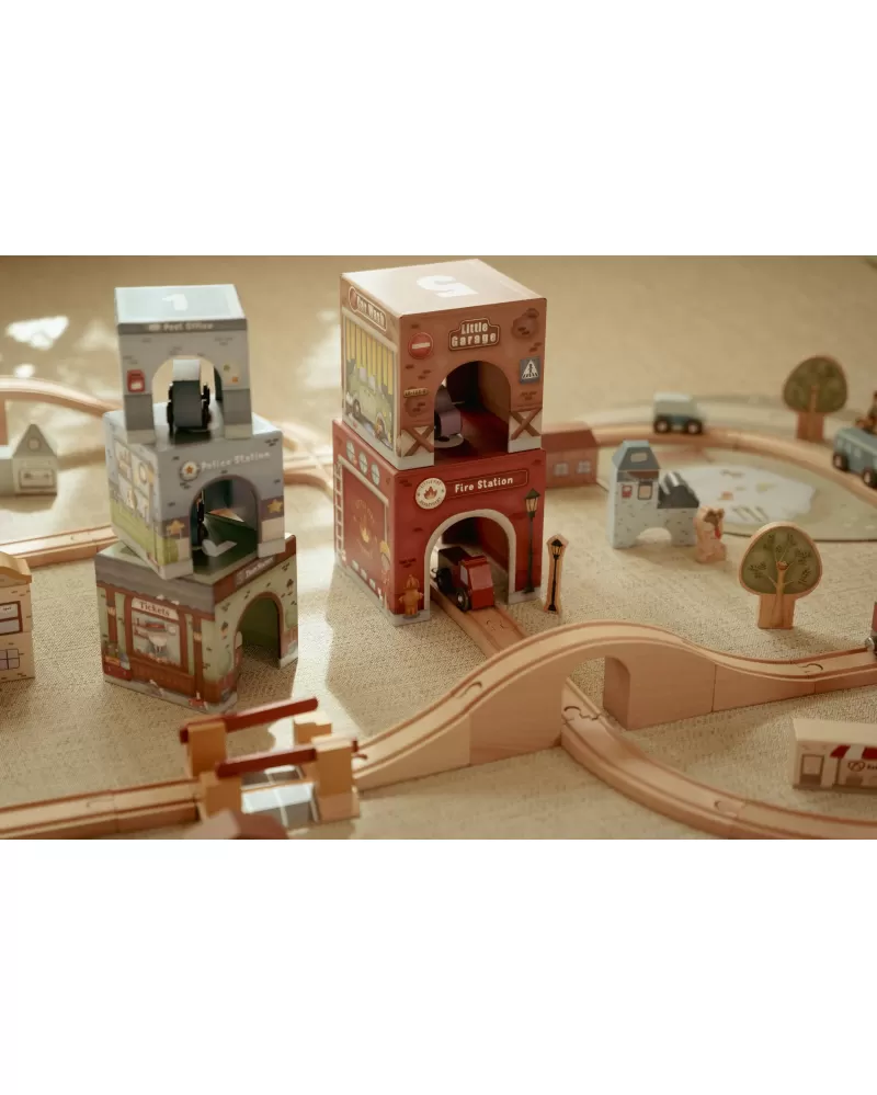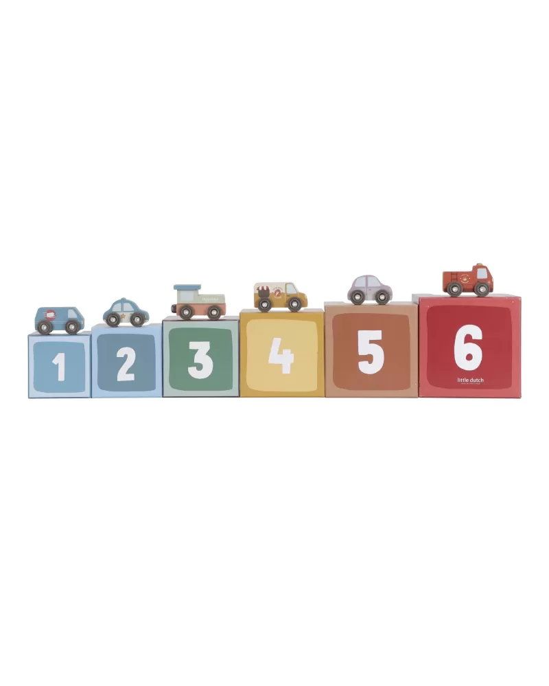 Děti mohou kostky stavět na sebe do vysoké věže i rozkládat je po podlaze a vytvářet celé městečko. Kostky lze skvěle kombinovat i s vláčkodráhou Little Dutch, kde vláček i autíčka pohodlně projedou pod kostkami jako pod mosty. Každá kostka má jinou ilustraci, která podporuje rozvoj fantazie, a každé vozidlo má své vlastní parkovací místo.
