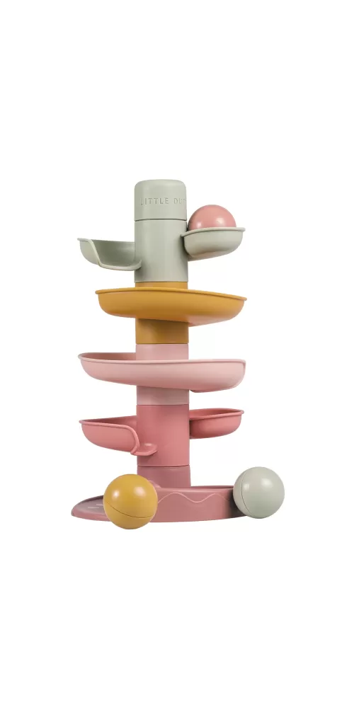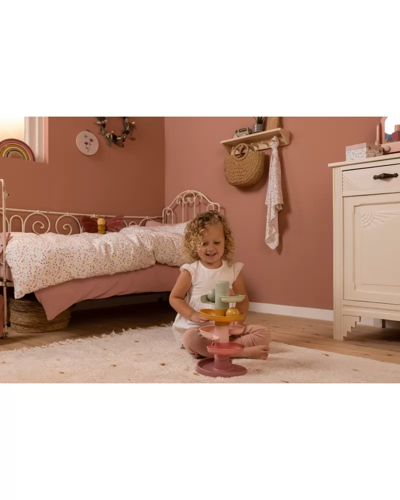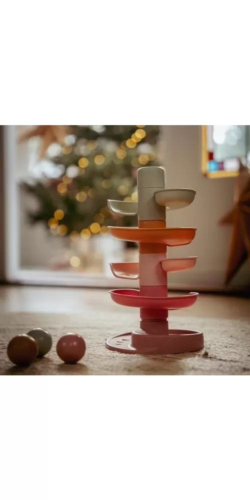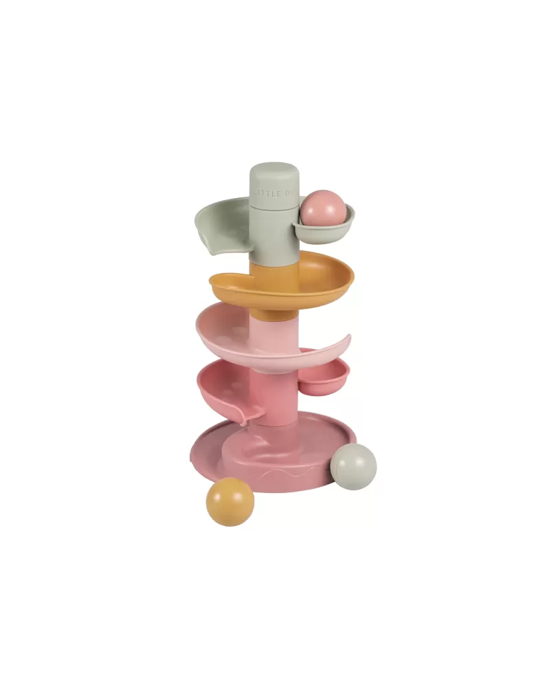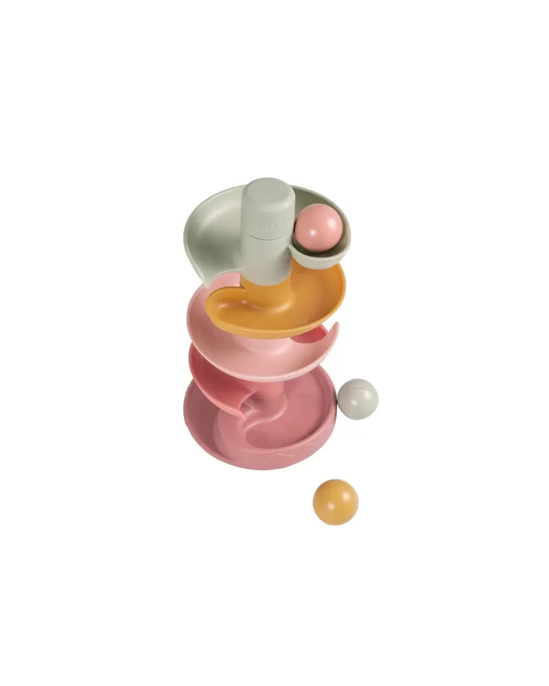 Sledujte s vaším dítětem, jak se míčky kutálí kolem dokola jeden za druhým! Dráhu v jemných pastelových barvách snadno sestavíte z pěti dílů a zábava může začít.