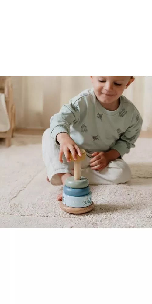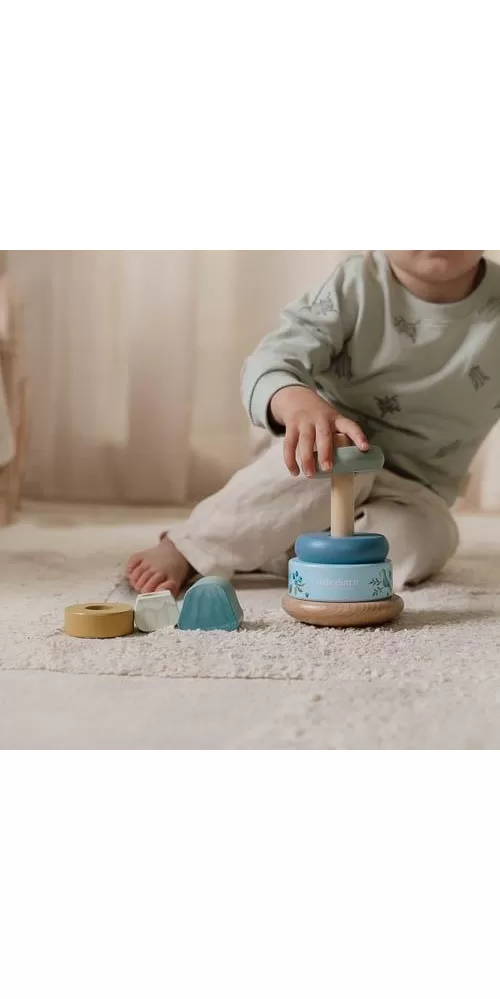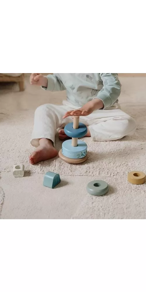 Hravé dřevěné nasazovací kroužky pro děti jsou navrženy tak, aby rozvíjely jejich koordinaci rukou a očí zábavnou a praktickou hrou. Děti se snaží umístit dřevěné kroužky ve správném pořadí a vytvořit z nich pyramidu. To je docela výzva, protože pyramida má půlkulatou základnu a tak se kýve na všechny strany!