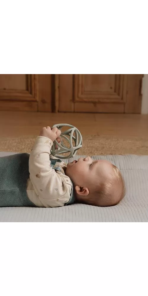 Lehounký míček z jemného silikonu má tvar pro snadné uchopení dětskými ručičkami. Míček láká dítě ke zkoumání rukama i ústy, slouží tak i jako kousátko, což oceníte při prořezávání prvních zoubků vašeho dítěte.