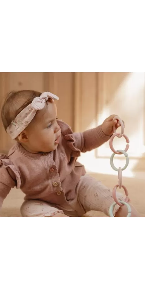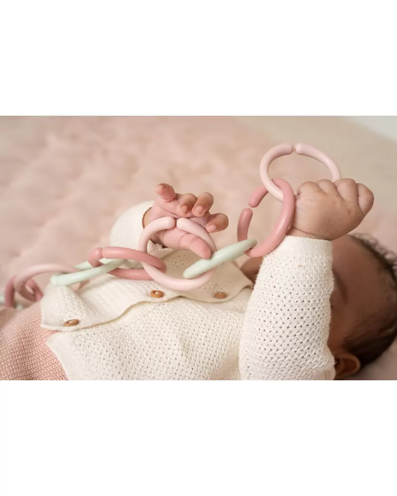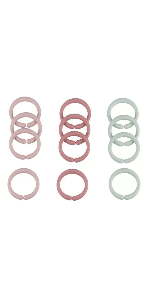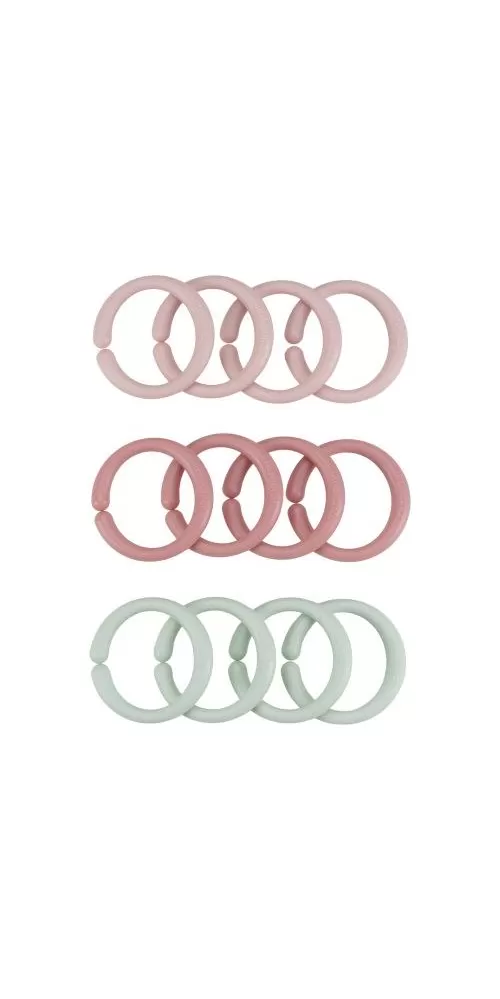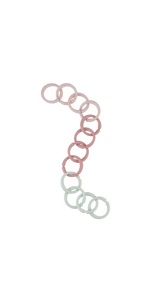 Multifunkční kroužky tvořící po spojení řetěz slouží jako hračka pro děti i jako pomůcka pro připevnění hraček ke kočárku či autosedačce. Dvanáct kroužků vytvoří řetěz ideální délky pro použití v kočárku.