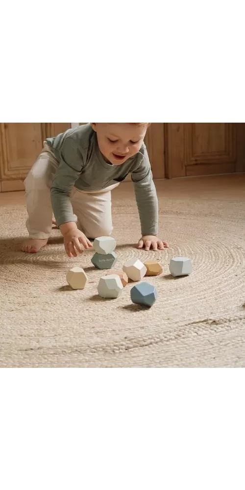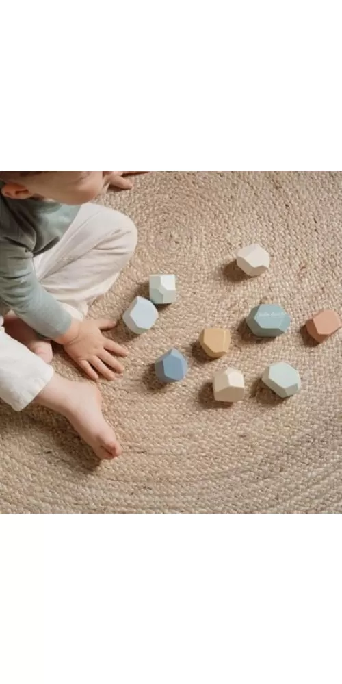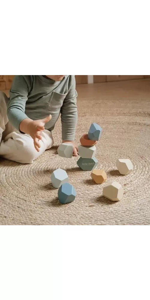 Balanční dřevěné kameny v krásných pastelových barvách podporují rozvoj jemné motoriky a koncentrace. Každý kámen má jiný tvar a při jejich skládání na sebe se dítě učí trpělivosti, soustředění a kreativnímu myšlení. Kameny je možné využít i pro první počítání a rozlišování barev.