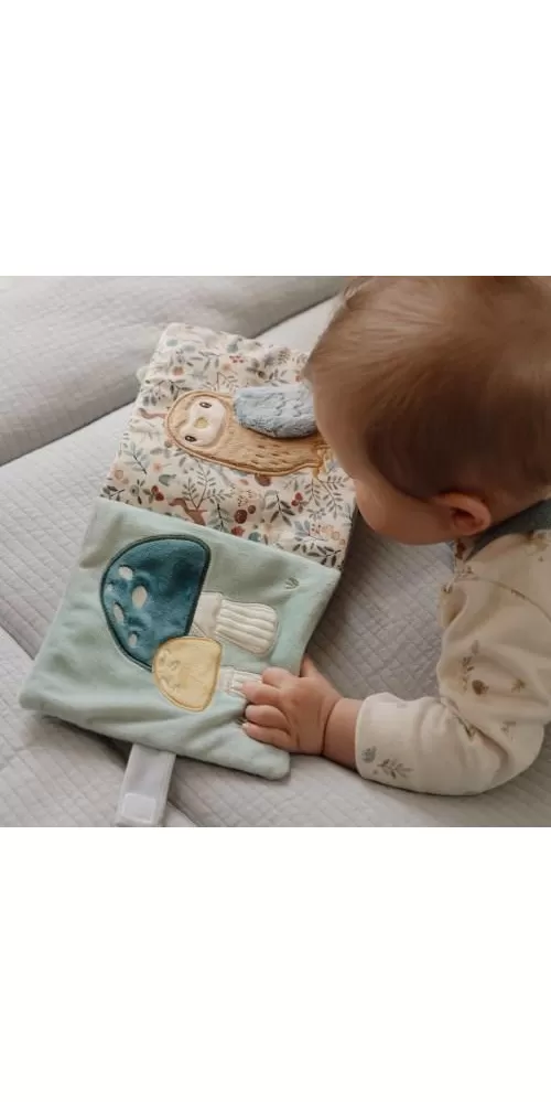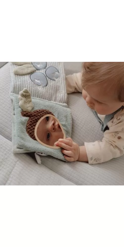 Měkká textilní knížka s krásnými motivy ze života v lese upoutá pozornost vašeho dítěte množstvím aktivit, ukrytých na jednotlivých stránkách. Ke zkoumání a prohlížení lákají šusticí i pískací stránky, různorodé textury nebo např. bezpečné zrcátko. Knížka pomáhá rozvíjet jednotlivé smysly dítěte i koordinaci ruka / oko.