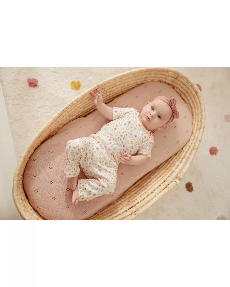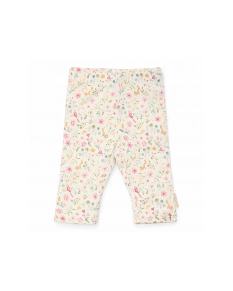 Legíny z jemné organické bavlny s krásným květinovým potiskem mají elastický pas pro snadné oblékání dítěte.