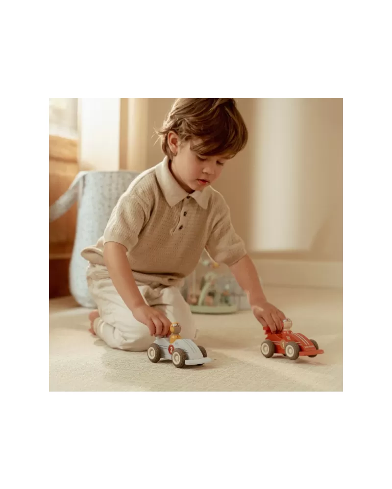 Každé autíčko má veselého řidiče v podobě vyjímatelného panáčka, kterého lze snadno vyměnit, a tak podpořit kreativní hru a fantazii. Pevné dřevěné provedení a kolečka s gumovými pneumatikami zajišťují hladkou a tichou jízdu po jakémkoli povrchu.