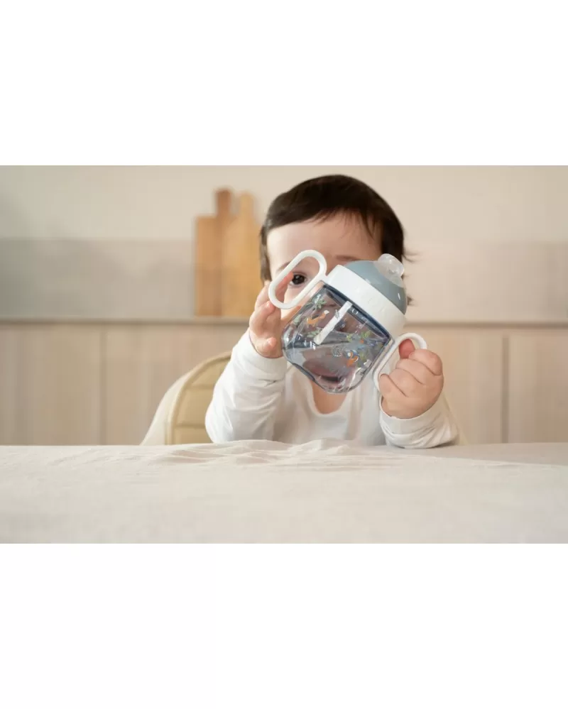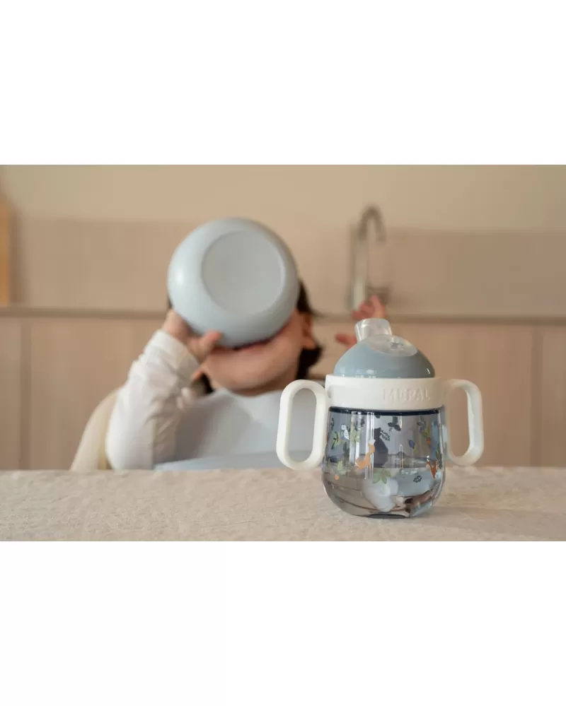 Hrnek s krásným potiskem je vybaven měkkým silikonovým pítkem pro pohodlné pití a držadly pro snadné držení. Víčko brání vytečení obsahu hrnku při přenášení.