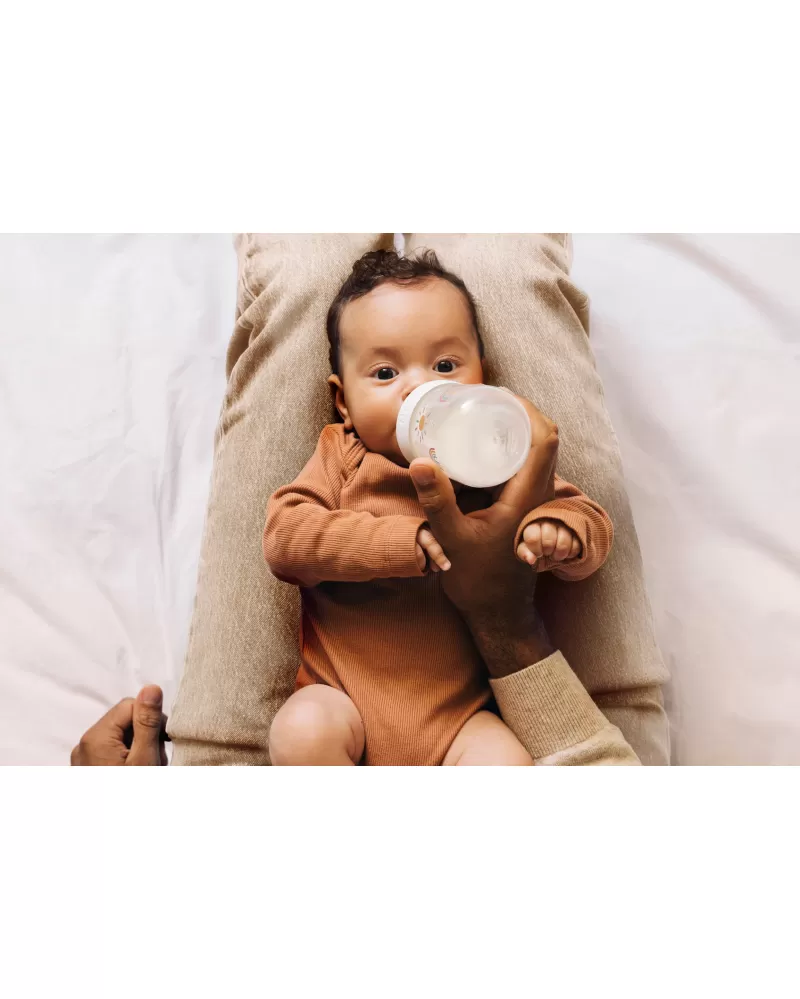 Kojenecká láhev Little Dutch s krásným potiskem a savičkou s antikolikovým ventilem je ideální pro krmení vašeho miminka od narození doma i na cestách. Díky ergonomickému tvaru se lahvička pohodlně drží.