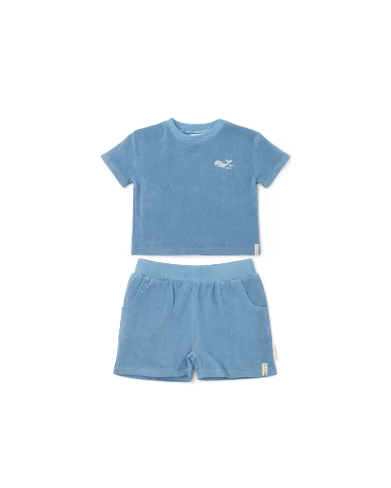 Tričko a kraťasy z příjemného bavlněného froté materiálu jsou ideální pro teplé letní dny na pláži, zahradě i na výletech a procházkách.