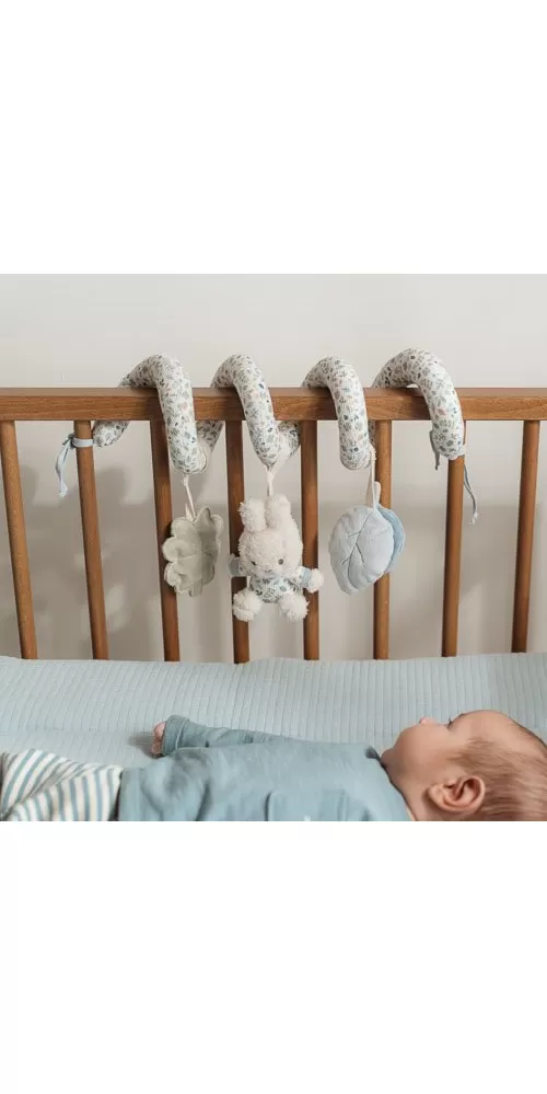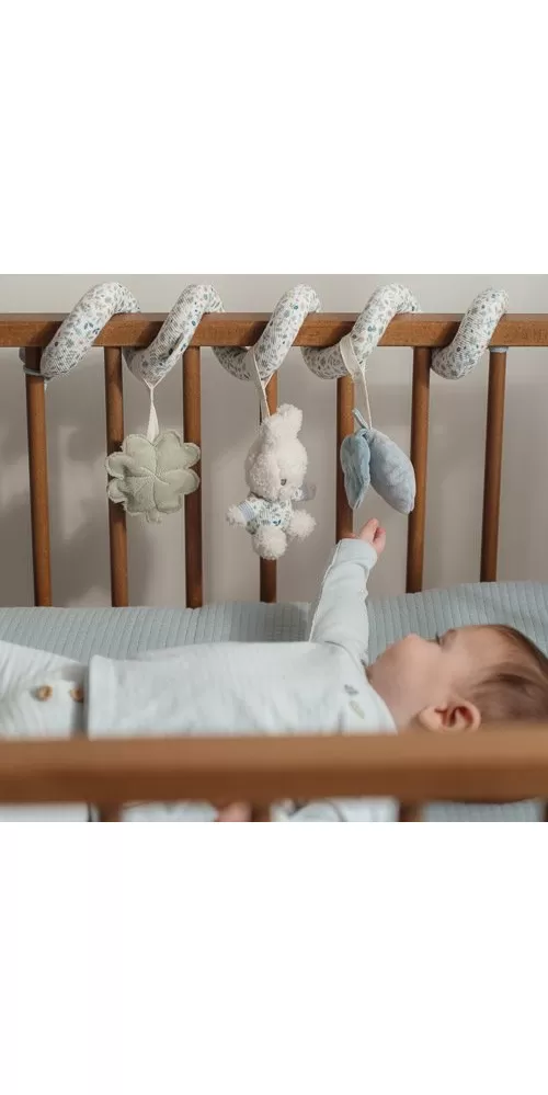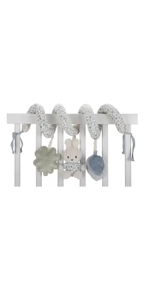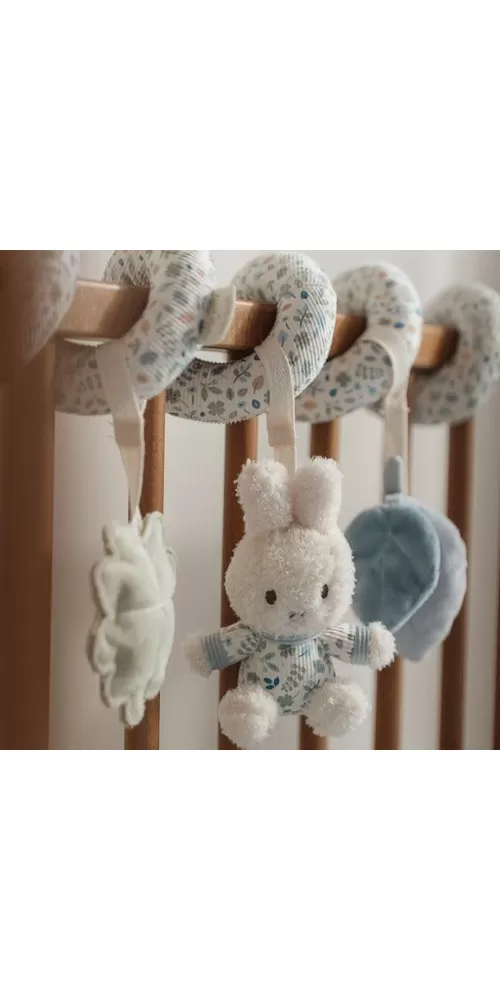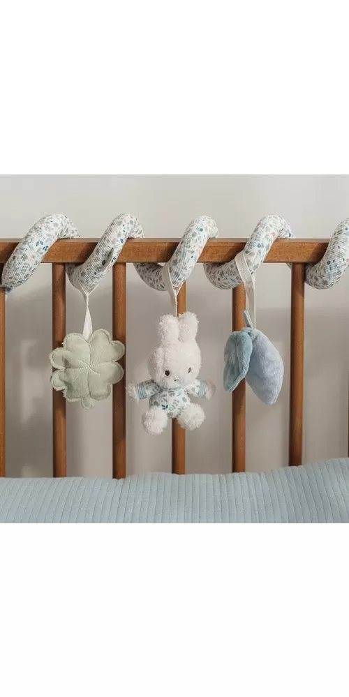 Textilní spirála se zavěšenými měkkými hračkami z jemného plyše v podobě králíčka Miffy a lístků různých tvarů zabaví vaše miminko v postýlce, kočárku i v autosedačce. Hračky stimulují koordinaci ruka / oko dítěte.
