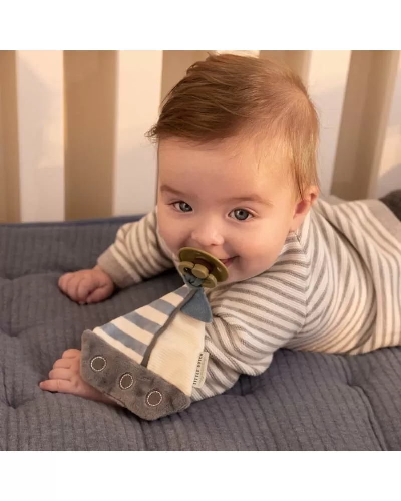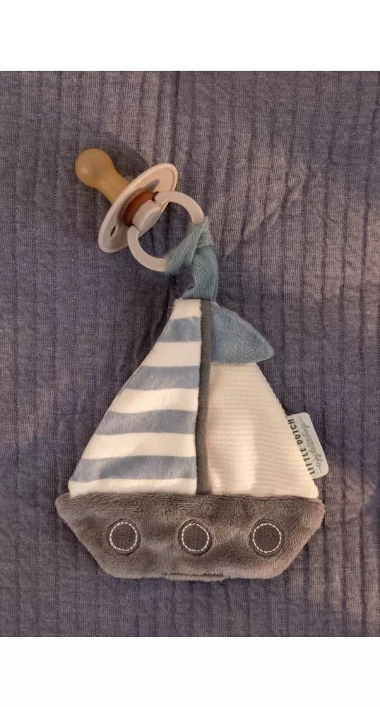 Plyšový muchláček v podobě plachetnice je určen k připevnění na šidítko. Díky muchláčku šidítko nikam nezapadne a vždy jej snadno najdete. Muchláček je je vyroben z velmi jemného a příjemného materiálu a je ideální jako společník do postýlky pro klidné usínání.
