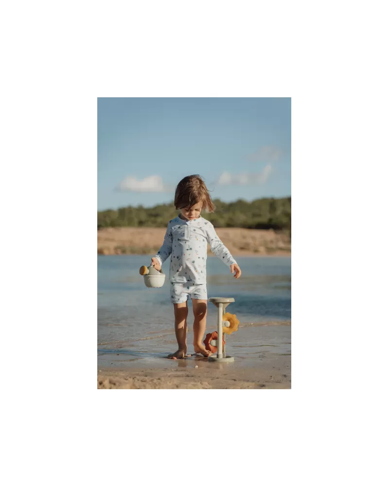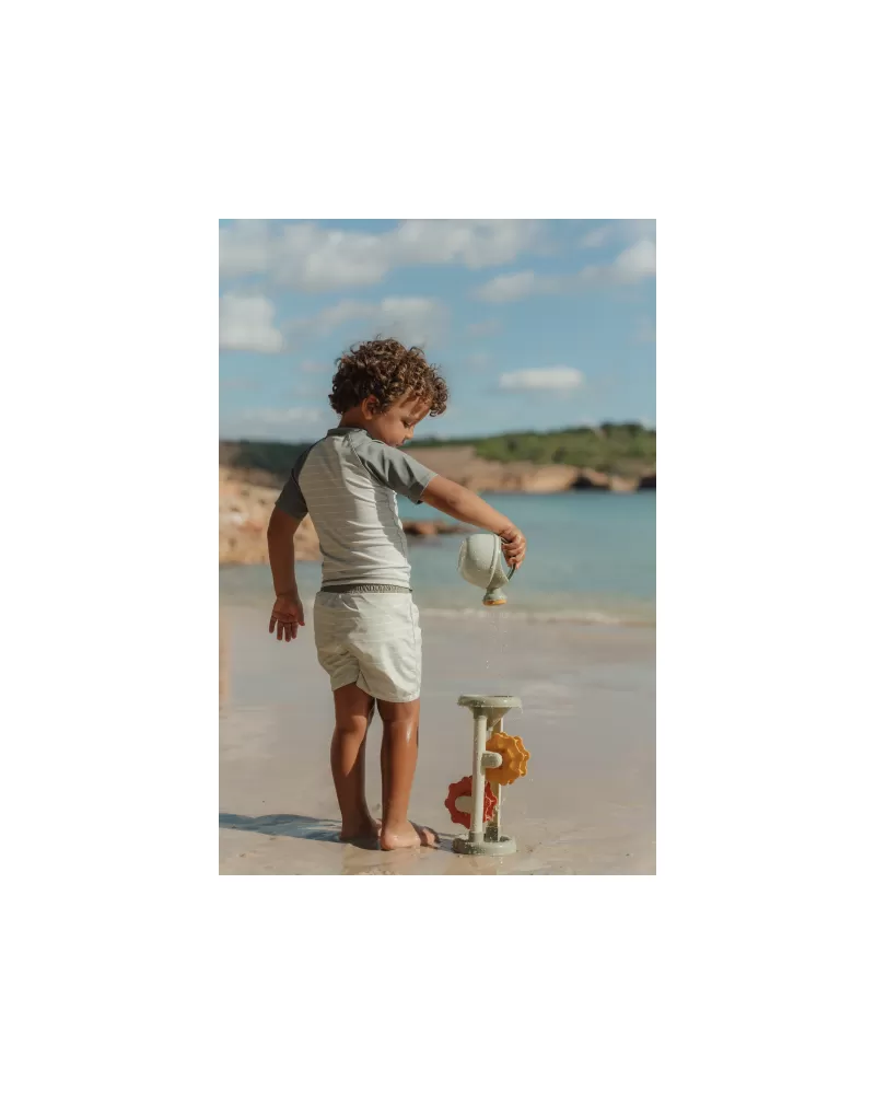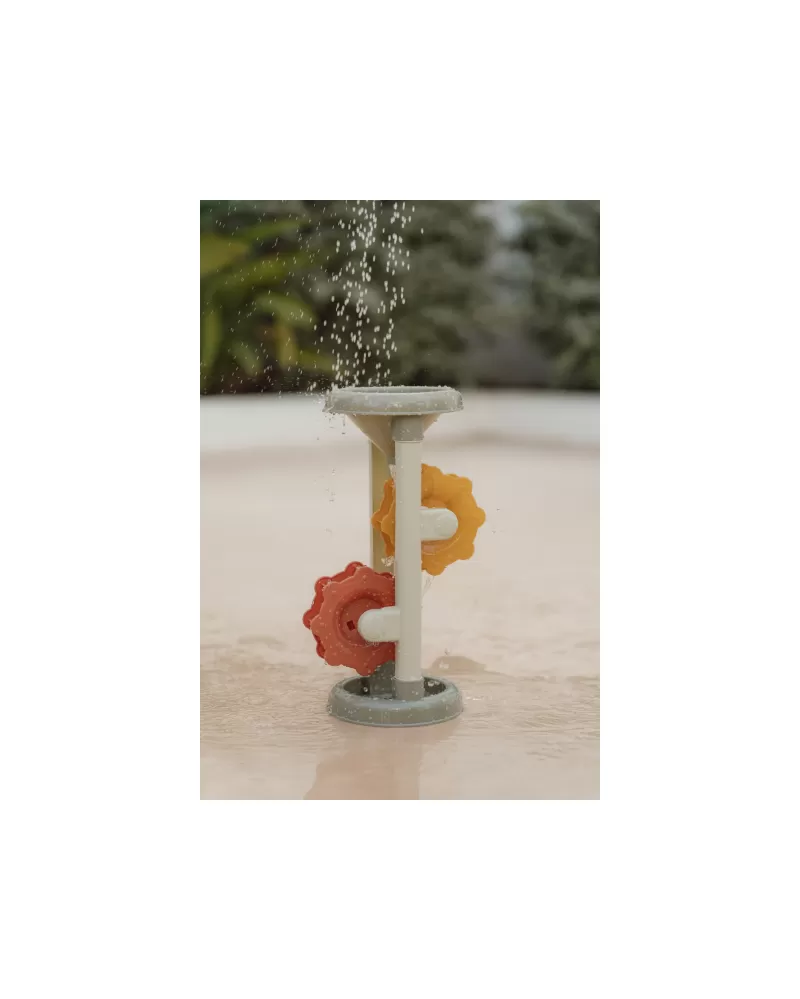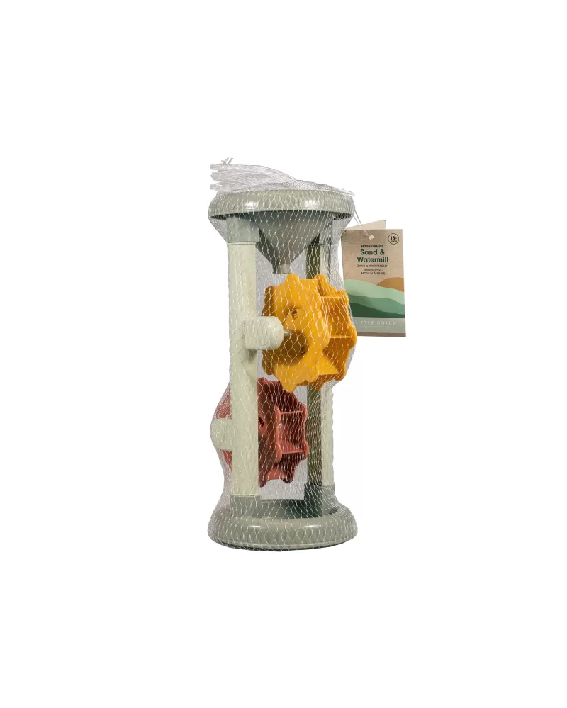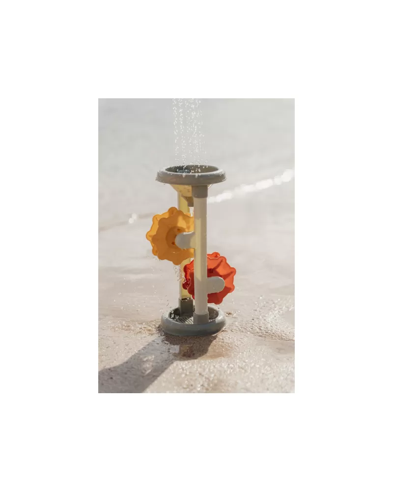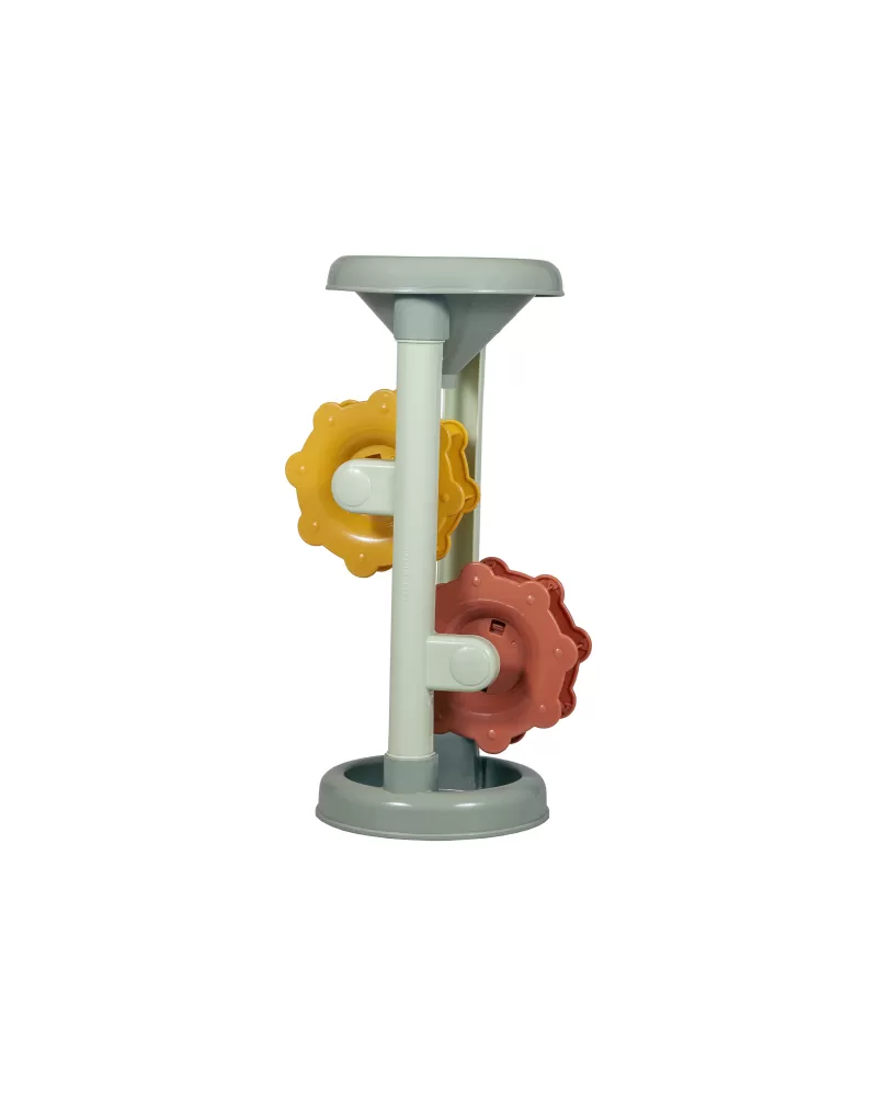 Hračka do vody i na písek, která vaše dítě zabaví na dlouhou dobu! Stačí do trychtýře v horní části nalít vodu nebo nasypat písek a pak už jen pozorovat, jak se mlýnská kola roztáčí.