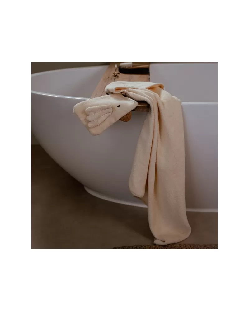 • Součástí sady je žínka ve tvaru husy a osuška s vyšitým motivem husy