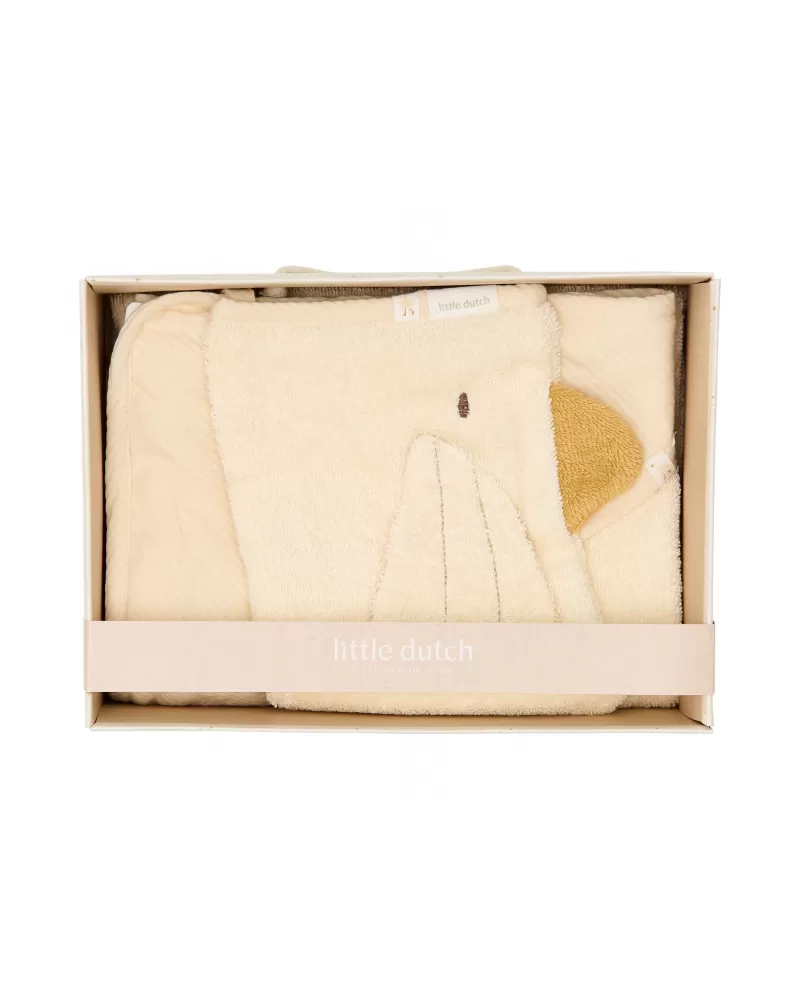 Dárková sada z kolekce Little Dutch Newborn Naturals obsahuje osušku s kapucí a žínku z jemné organické bavlny v krásném designovém provedení. Je ideální pro každodenní péči o miminko i jako stylový dárek k narození dítěte.