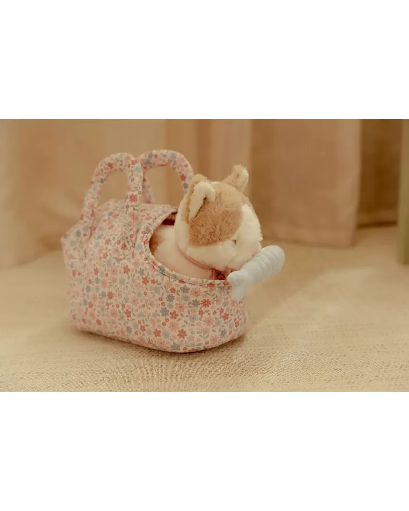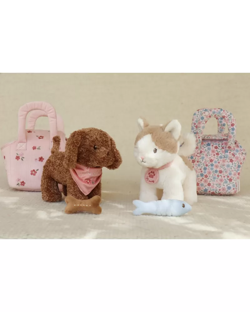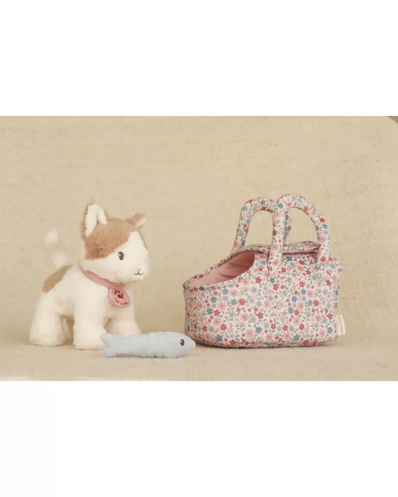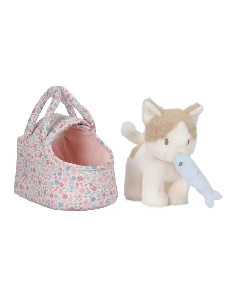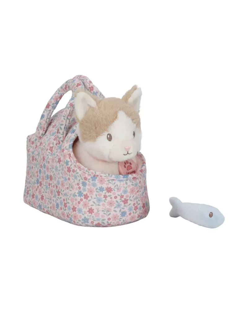 Kočička přichází v elegantní květované tašce s předním otvorem, aby mohla zvědavě vykukovat ven. Díky tomu si ji děti mohou vzít kamkoli – na procházku, na výlet, do školky nebo třeba k prarodičům. Na krku má přívěsek se svým jménem. Plyšová rybka na hraní má uvnitř magnet, takže drží kočičce u tlamičky.