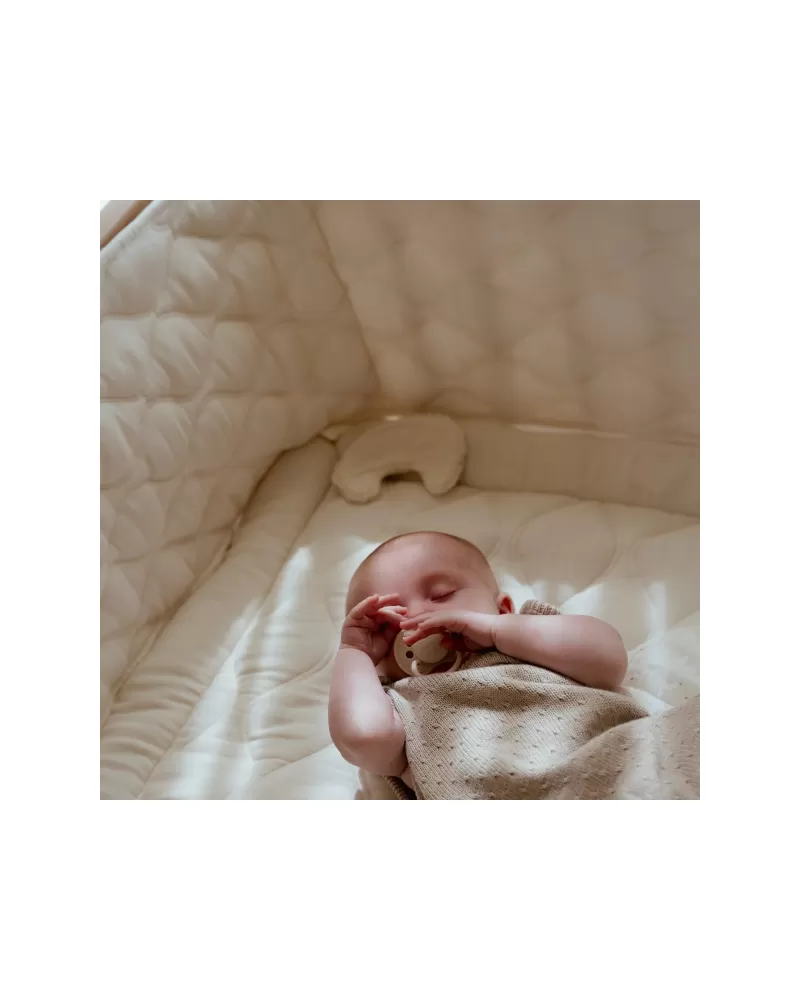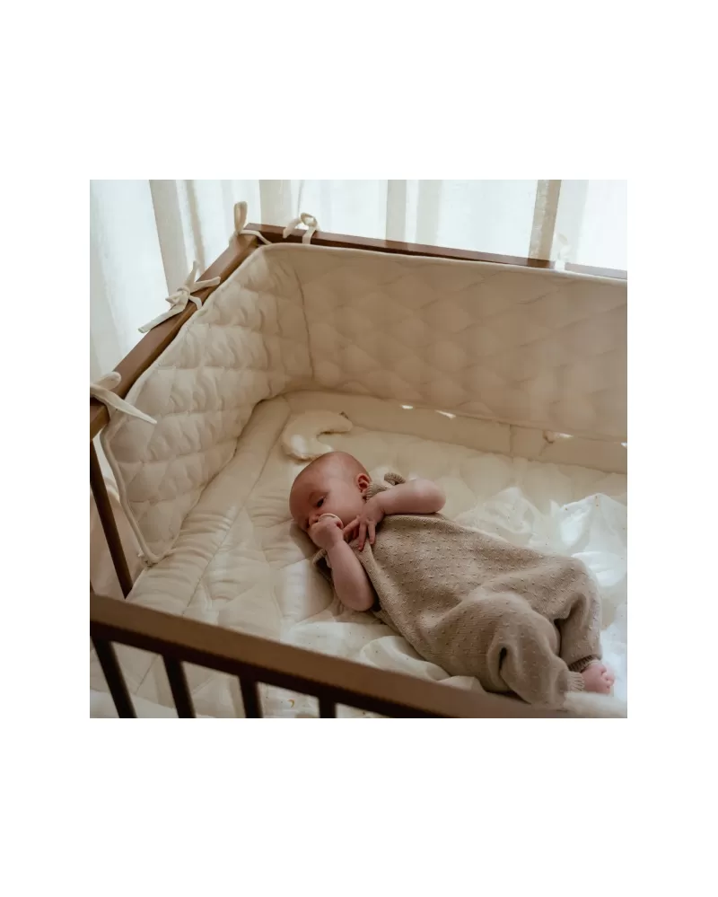 Zajistěte svému miminku pocit bezpečí i pohodlí s tímto měkkým mantinelem do postýlky v krásném provedení s ozdobným prošíváním. Chrání dítě před tvrdými bočnicemi postýlky a vytváří útulné, klidné prostředí pro spánek i hraní.