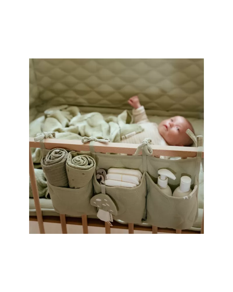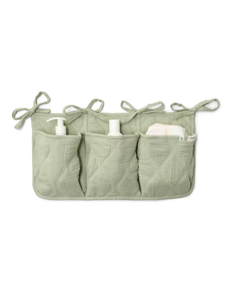 Praktický závěsný organizér v krásném provedení s ozdobným prošíváním vám umožní mít vše potřebné pro péči o vaše miminko vždy po ruce. Organizér ze 100% organické bavlny nabízí tři prostorné kapsy pro uložení dudlíků, bryndáčků, plen, ubrousků, hraček apod. Pomocí praktických vázacích šňůrek jej snadno připevníte k přebalovacímu pultu, na stěnu či na postýlku.