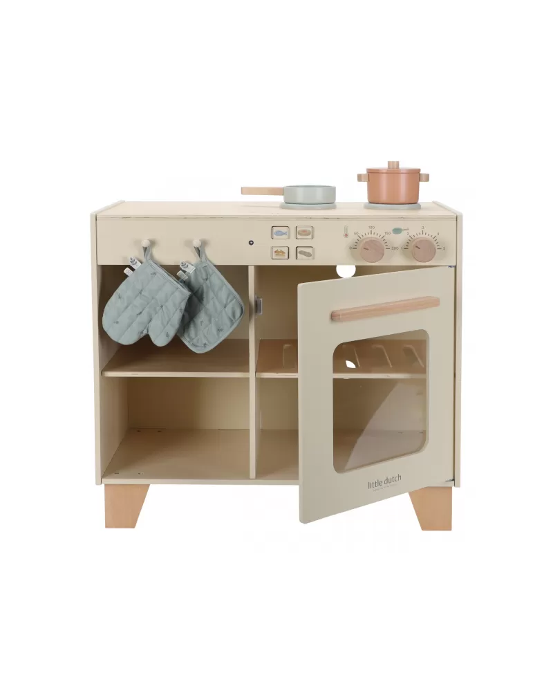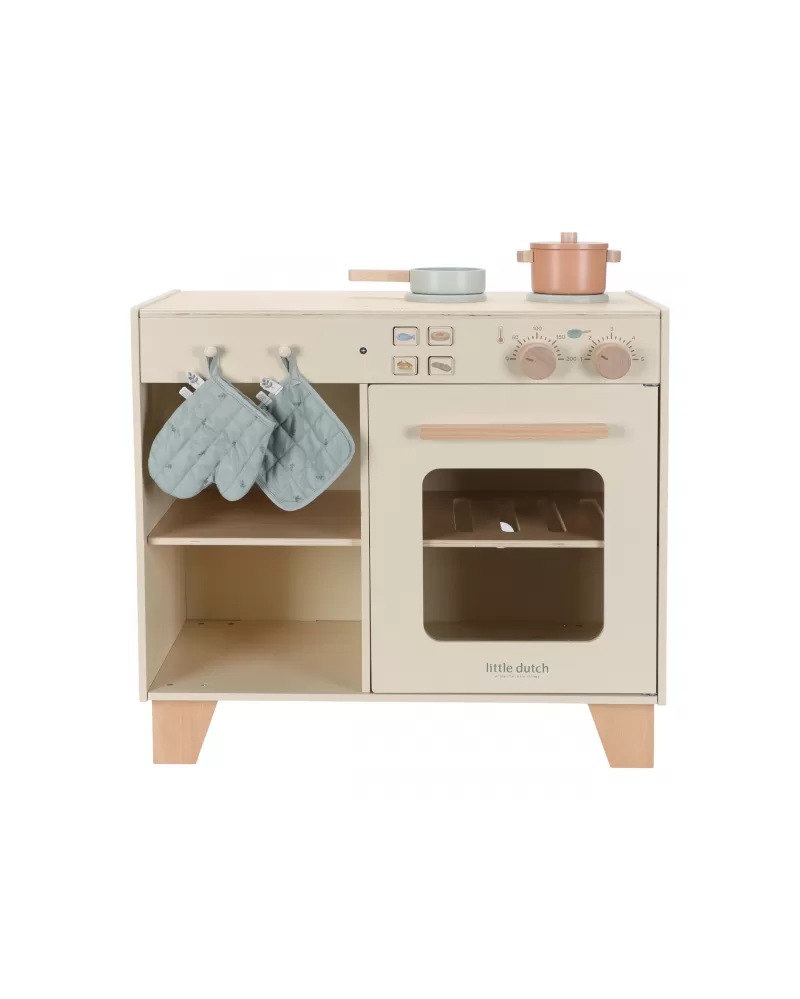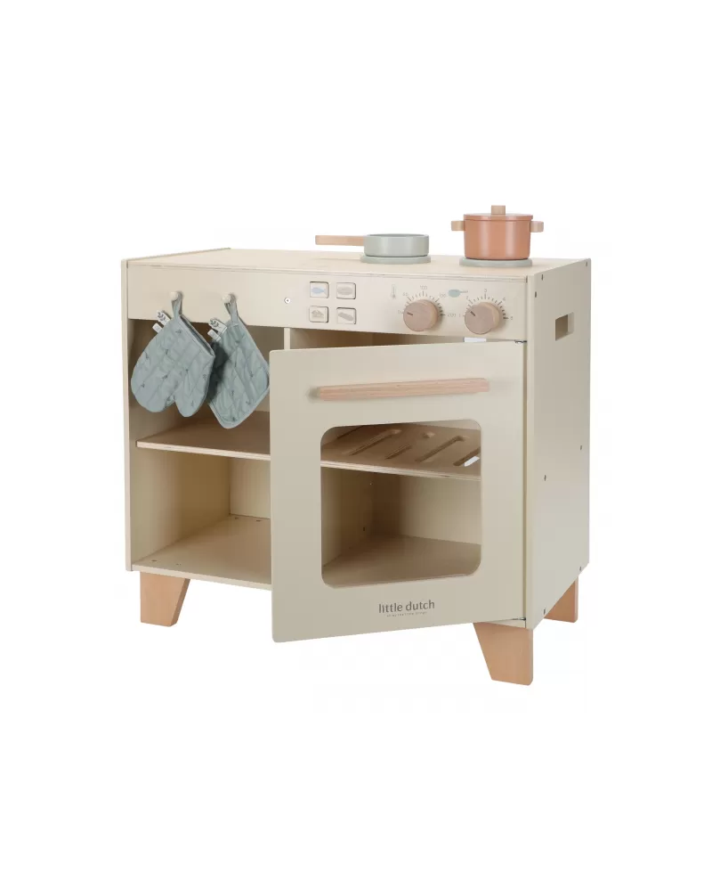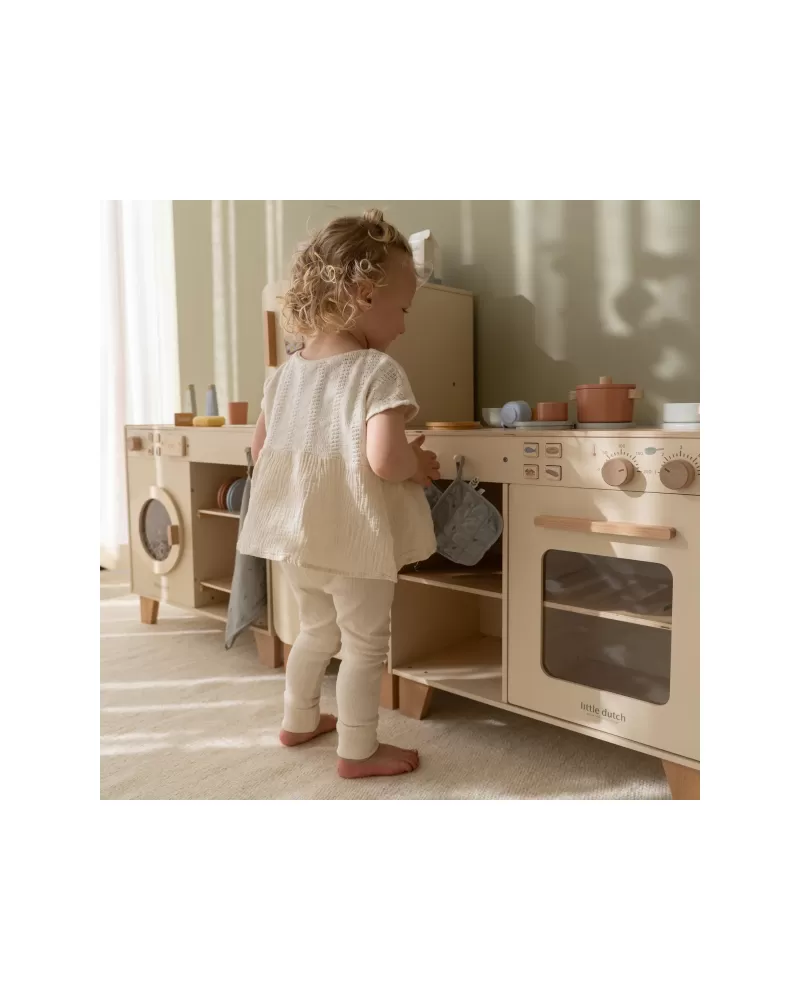 Díky možnosti kombinace s lednicí nebo pračkou z kolekce dřevěných hraček Little Dutch lze vytvořit plně vybavenou herní kuchyň. Tu pak můžete doplnit dalšími dřevěnými hračkami Little Dutch, např. kávovarem, toustovačem, kuchyňskou váhou, krájecím ovocem, krájecí zeleninou, čajovým servisem apod.