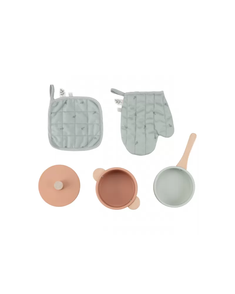 Krásná dřevěná kuchyňka Little Dutch s realistickými detaily nabízí vše, o čem malý kuchař či kuchařka sní, když vymýšlí nové recepty pro rodinu či své panenky a oblíbené plyšáky. Vaření i pečení dostává díky otočným tlačítkům s ilustracemi autentický nádech. K dispozici jsou dvě pánvičky a dvě chňapky.