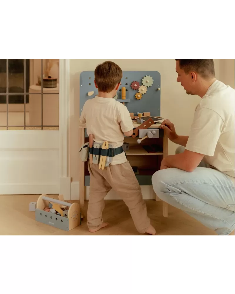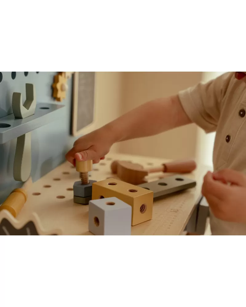 Malé děti milují napodobování svých rodičů při jejich činnostech a tento ponk s nářadím jim umožní sestavit a zkonstruovat různé věci, zrovna jako to umí jejich rodiče! Aktivitou při šroubování a sestavování částí dohromady a jejich opětovnému rozpojování se učí jemné motorice a soustředění, kreativitě a představivosti. Skvělý způsob, jak dětem nabídnout kreativní prostor pro tvoření a objevování.