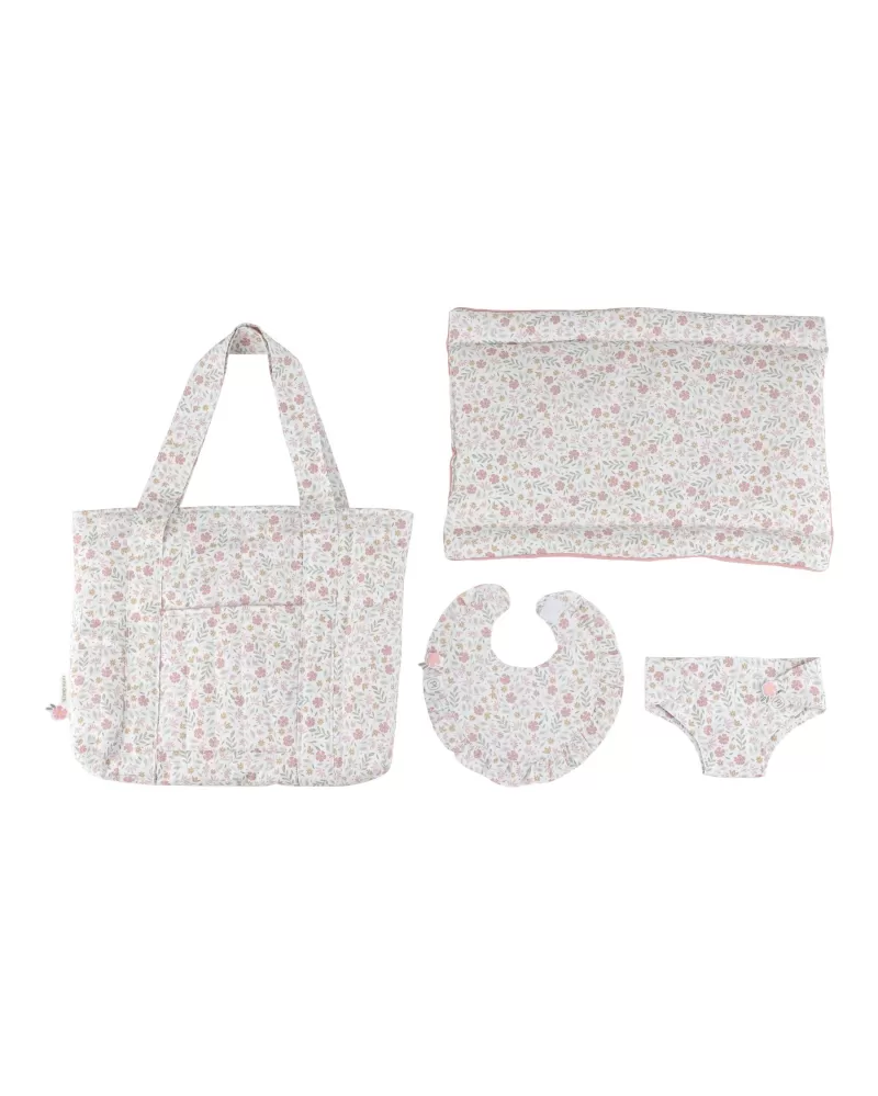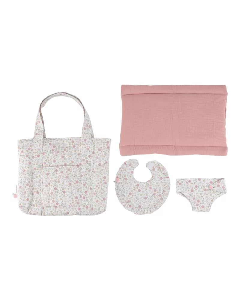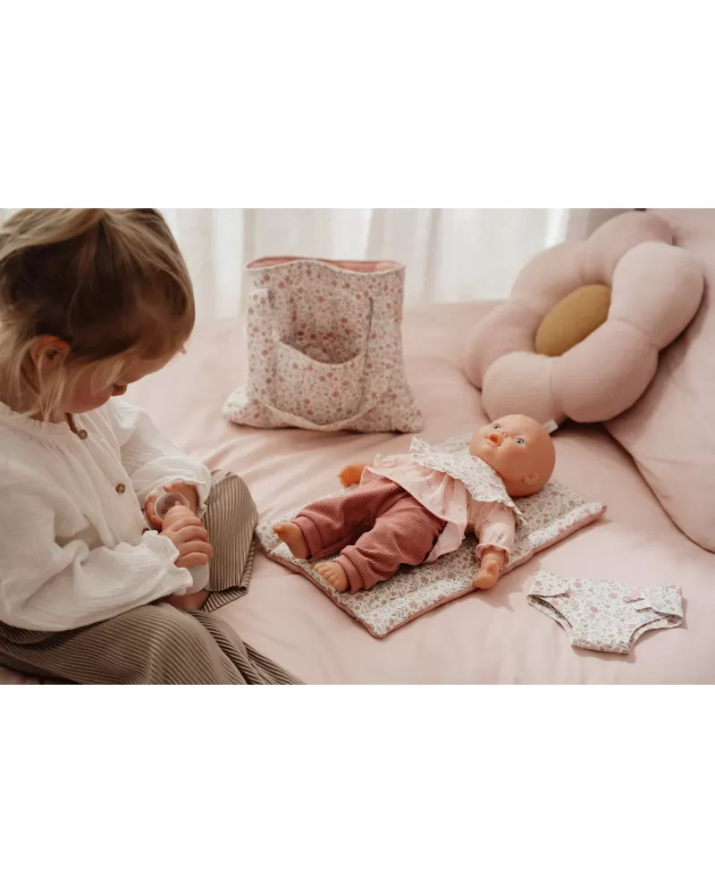 Stylový květinový design krásně ladí s dalšími doplňky pro panenky z kolekce Little Dutch Soft Flowers.
