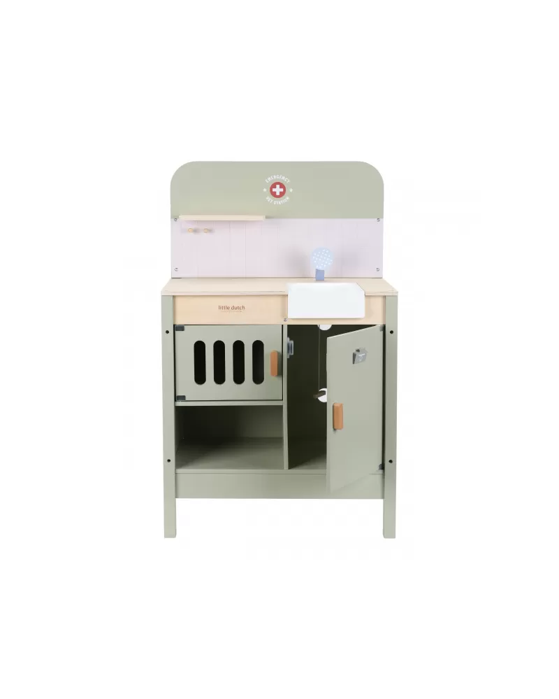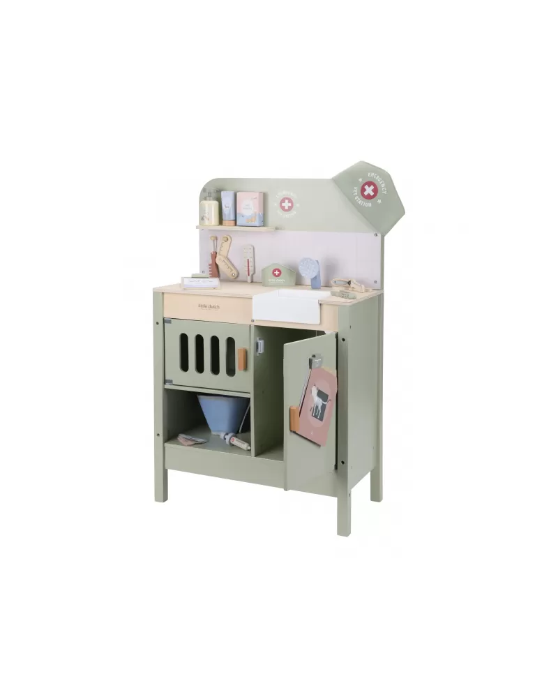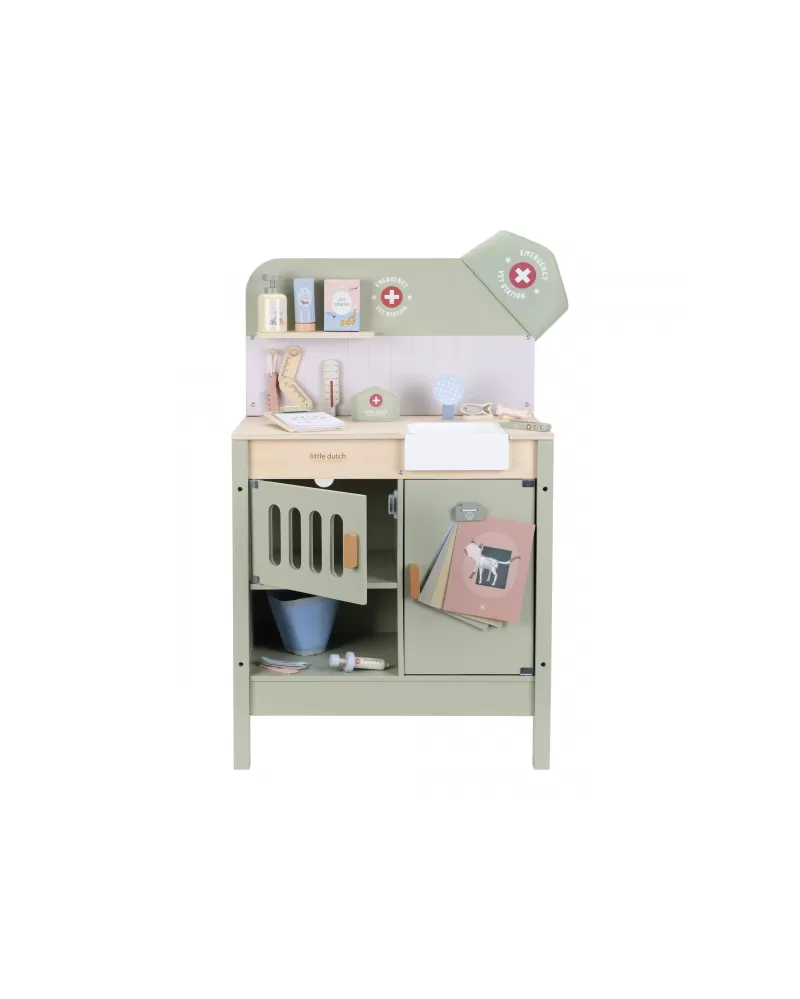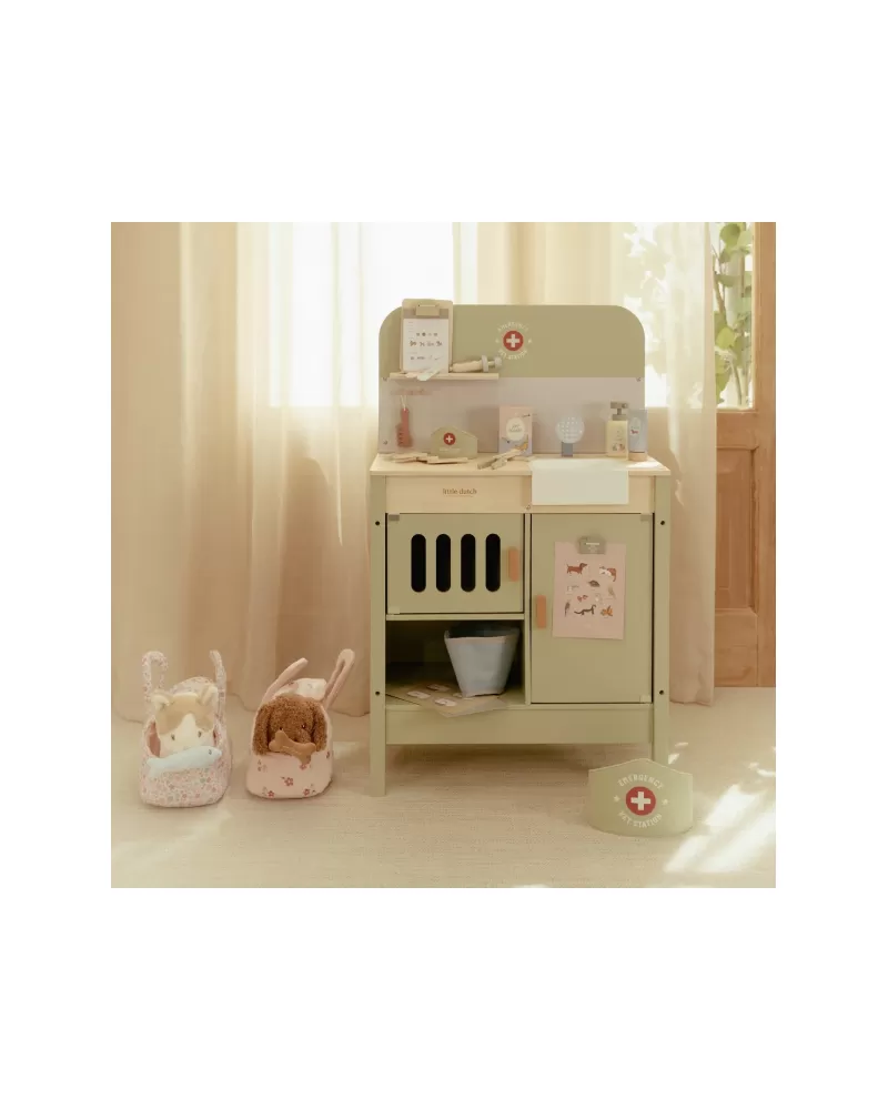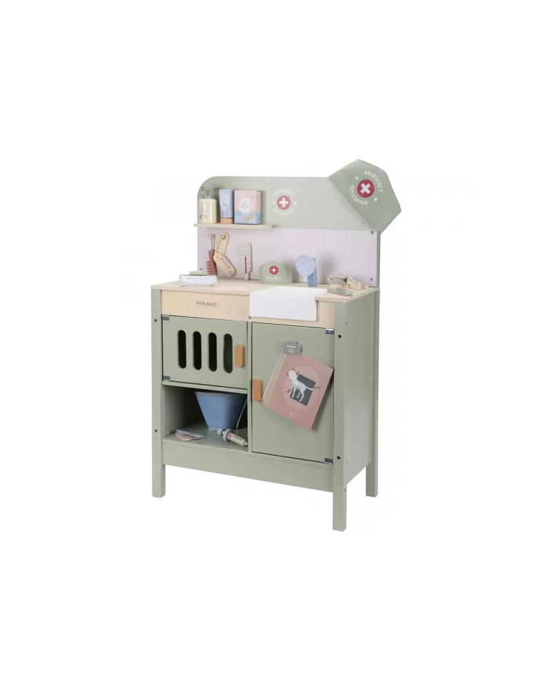 Dřevěná veterinární ordinace Little Dutch je skvělým dárkem pro děti, které milují zvířátka a péči o ně. Díky realistickým doplňkům se malí ošetřovatelé snadno ponoří do světa péče o nemocné mazlíčky. Připravte se na spoustu příběhů ze života plyšových zvířátek a nekonečné hodiny zábavného hraní!