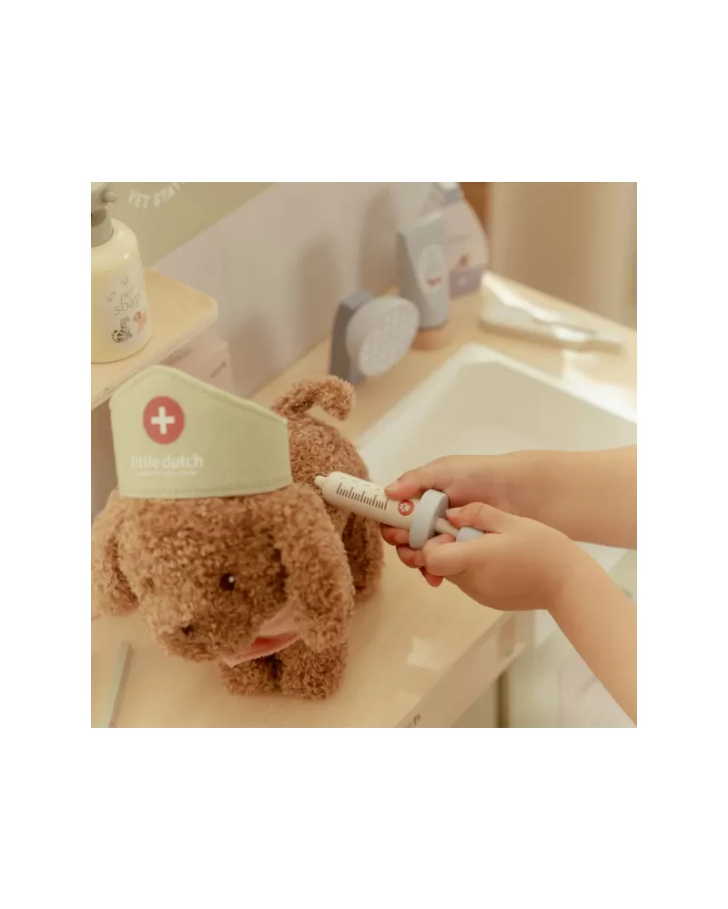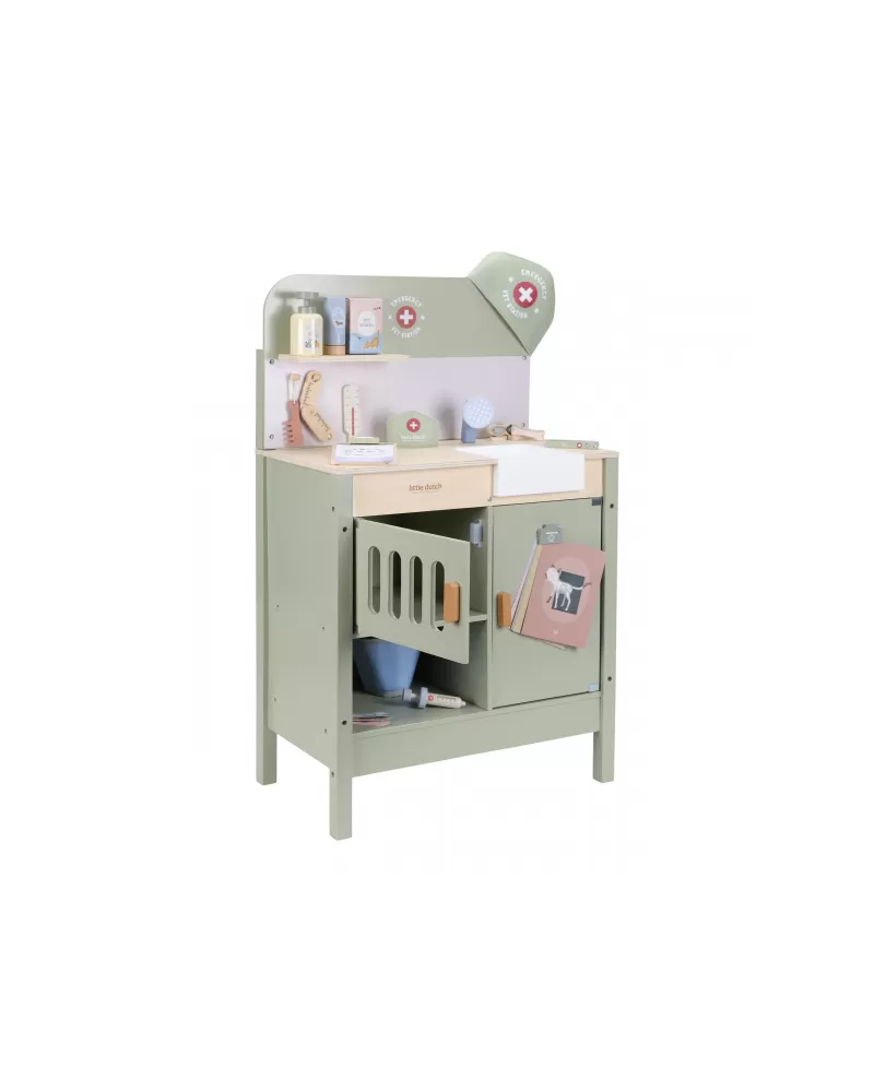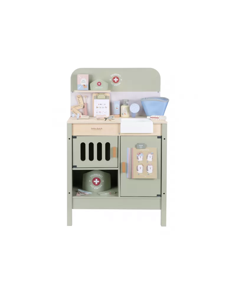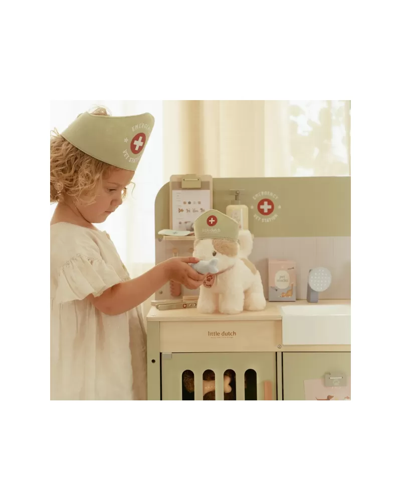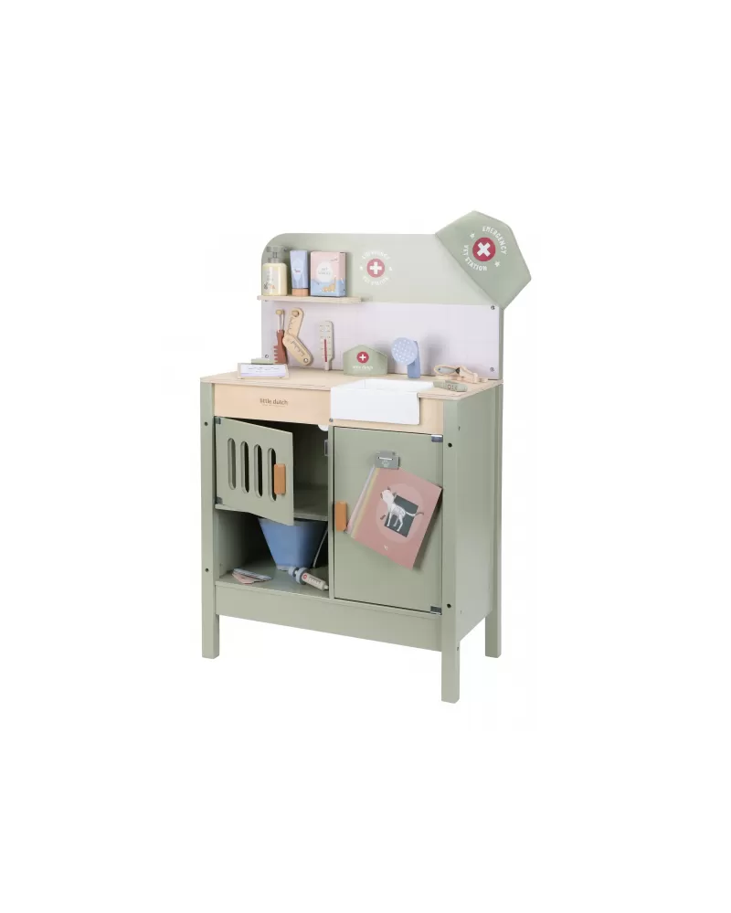 Dřevěná veterinární ordinace Little Dutch je skvělým dárkem pro děti, které milují zvířátka a péči o ně. Díky realistickým doplňkům se malí ošetřovatelé snadno ponoří do světa péče o nemocné mazlíčky. Připravte se na spoustu příběhů ze života plyšových zvířátek a nekonečné hodiny zábavného hraní!